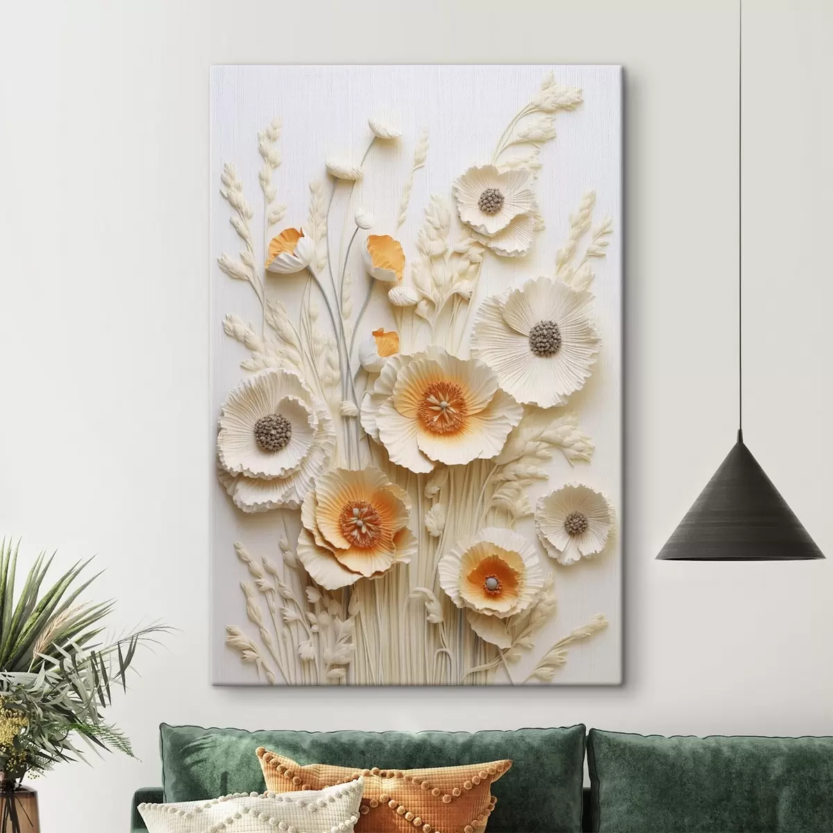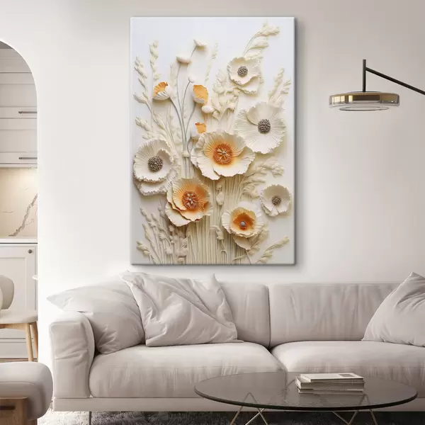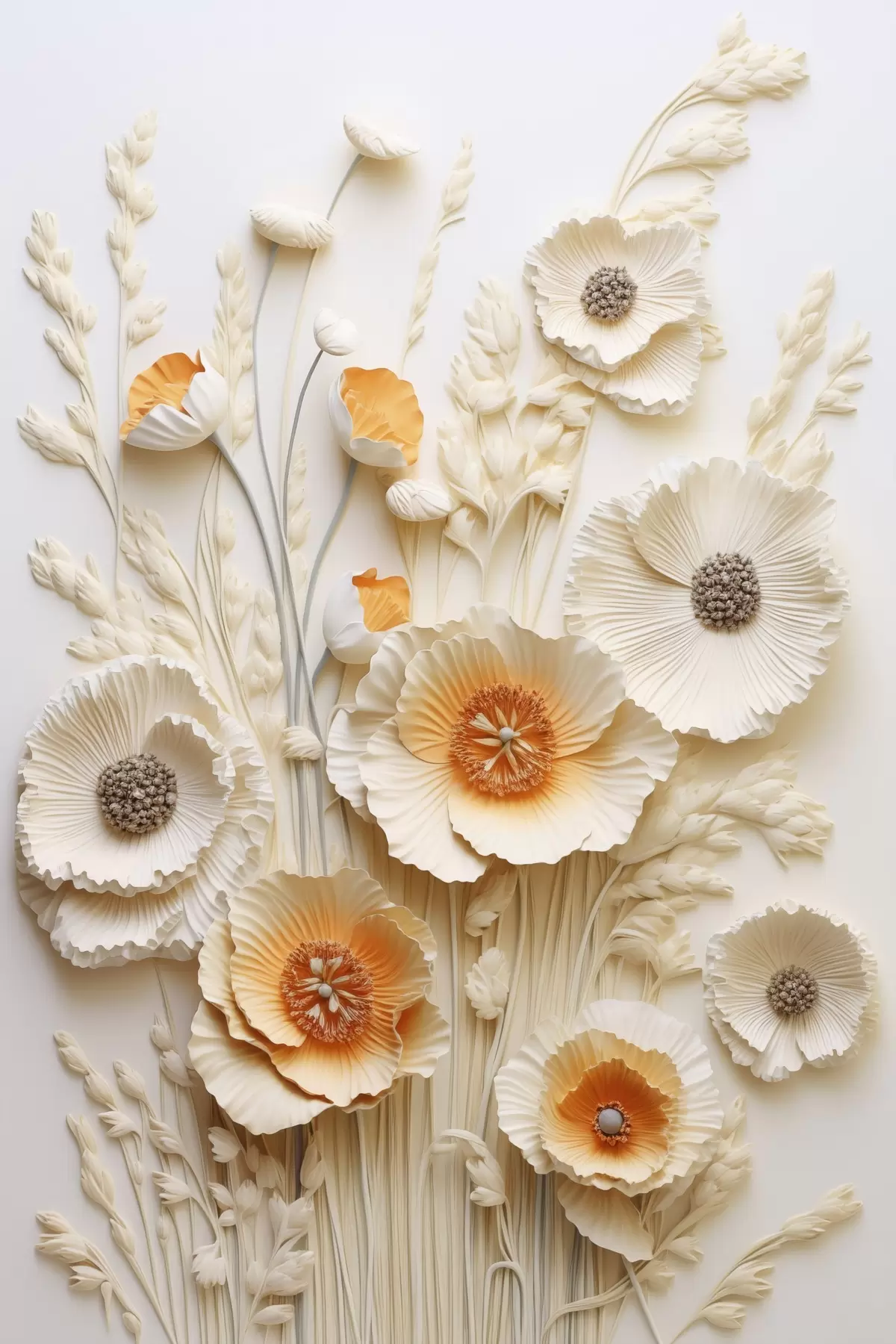 wall murals A bouquet of cream and orange poppies with dried wheat stalks s48747