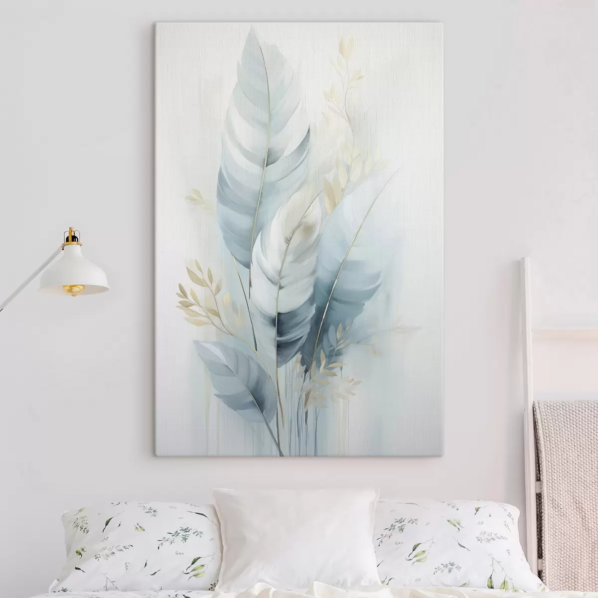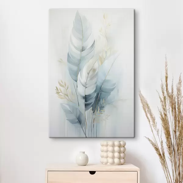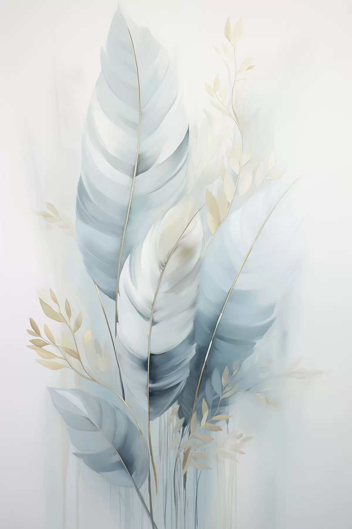 Picture Large, soft feathers in shades of blue and white with delicate beige leaves Nr s48749