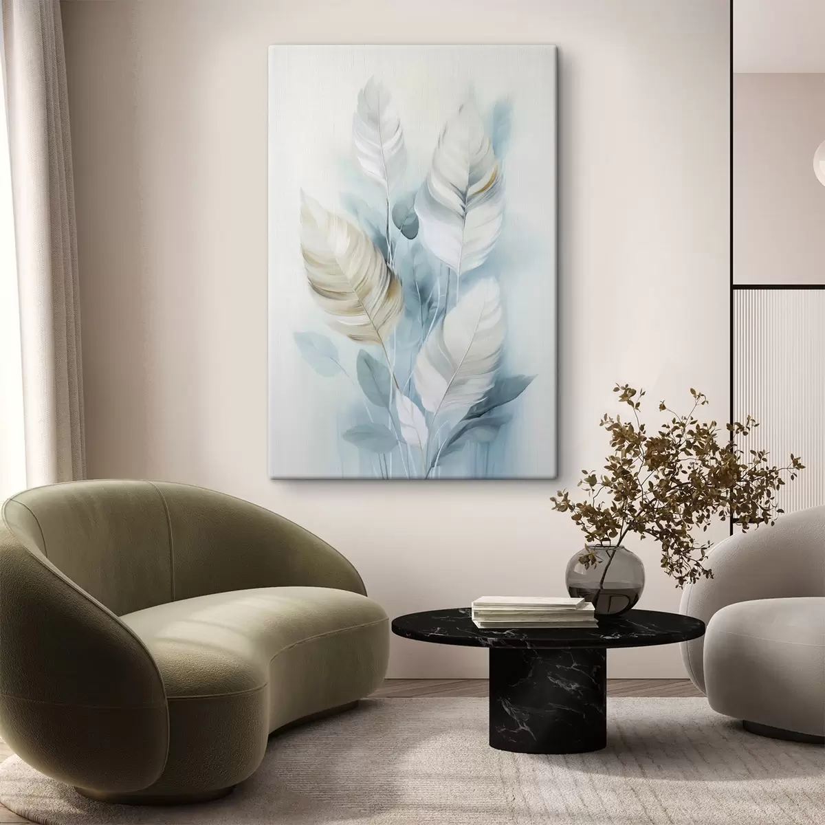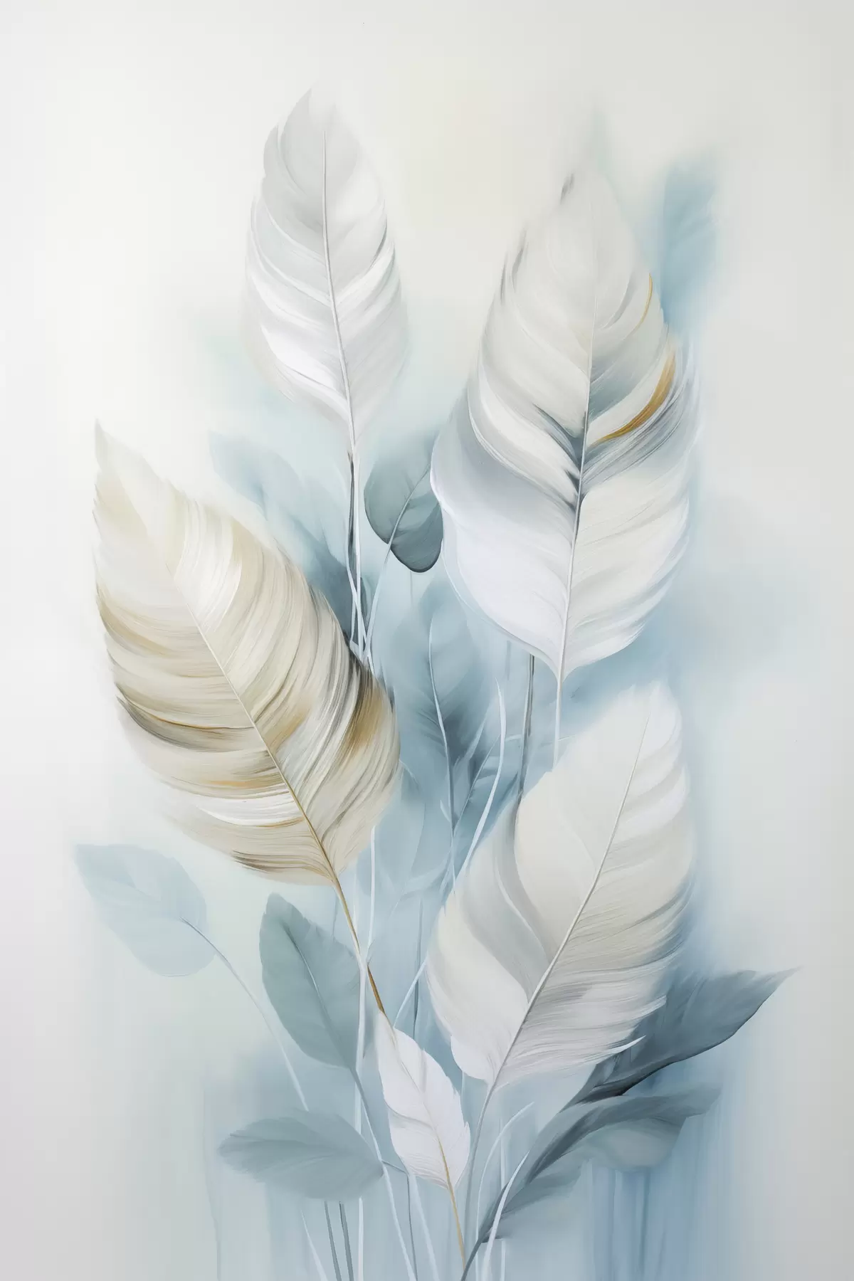 Picture Large, soft feathers in shades of blue and white with delicate beige leaves Nr s48750