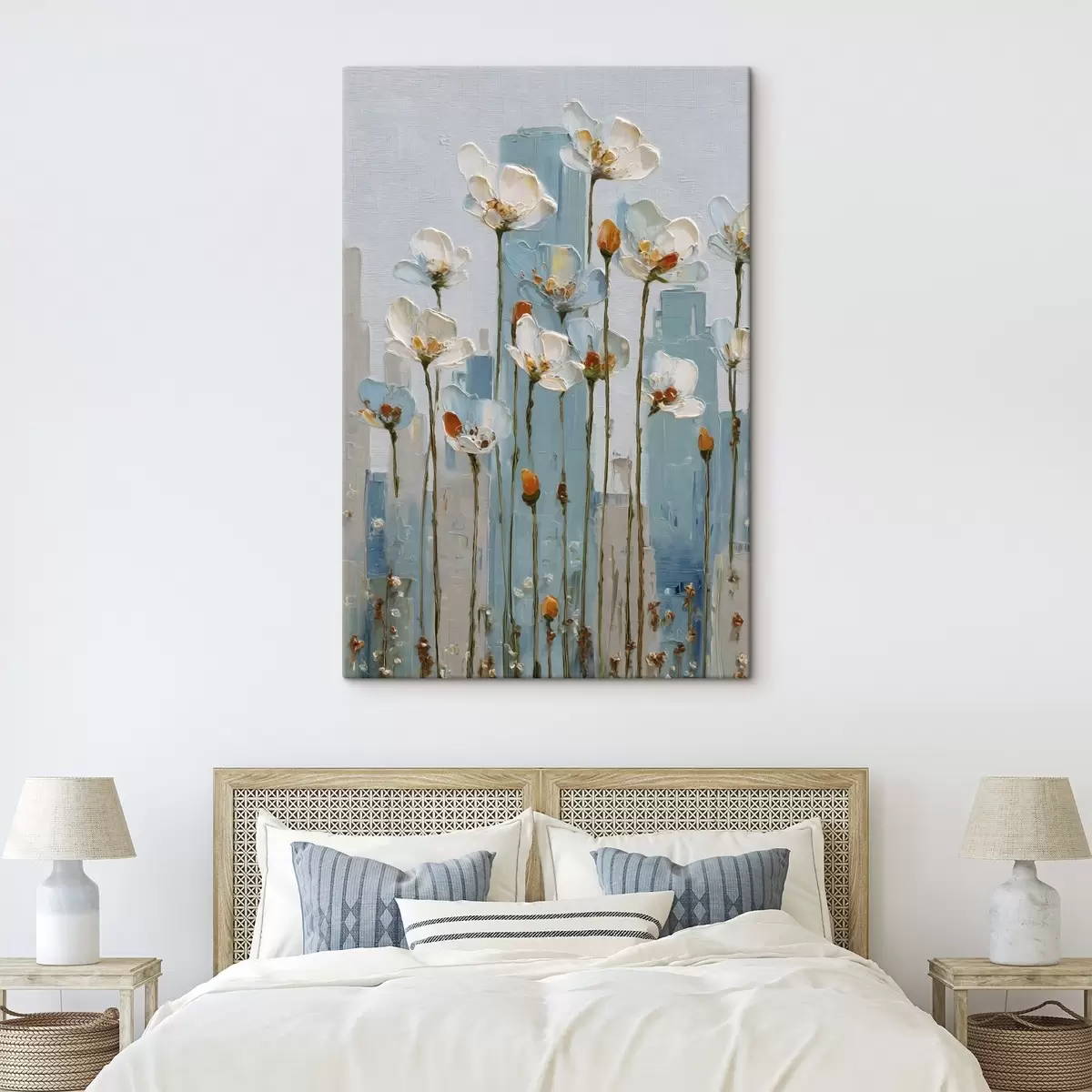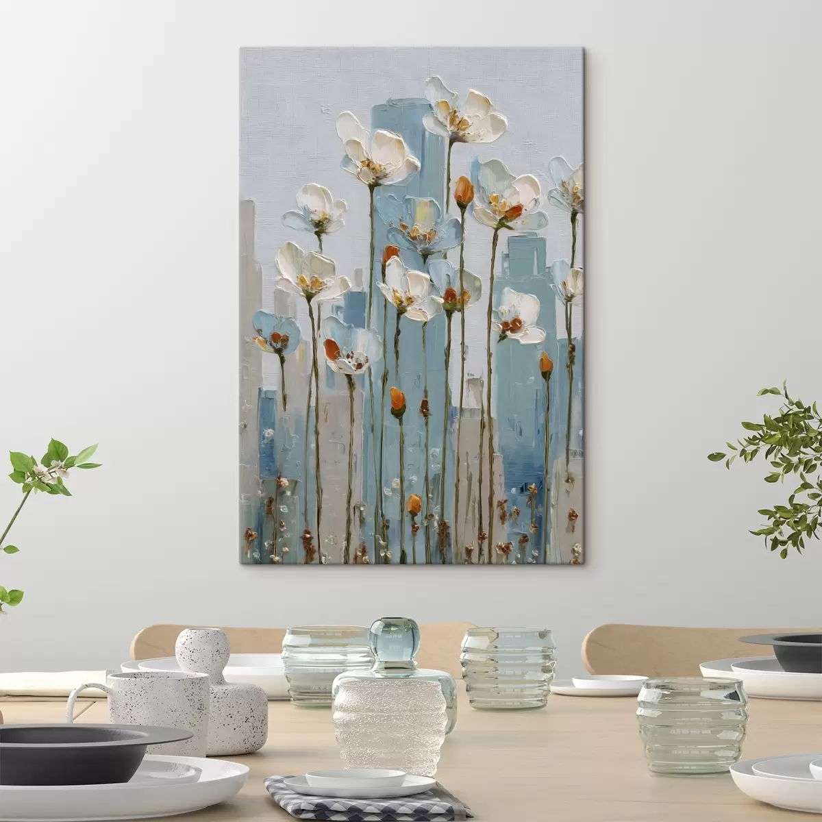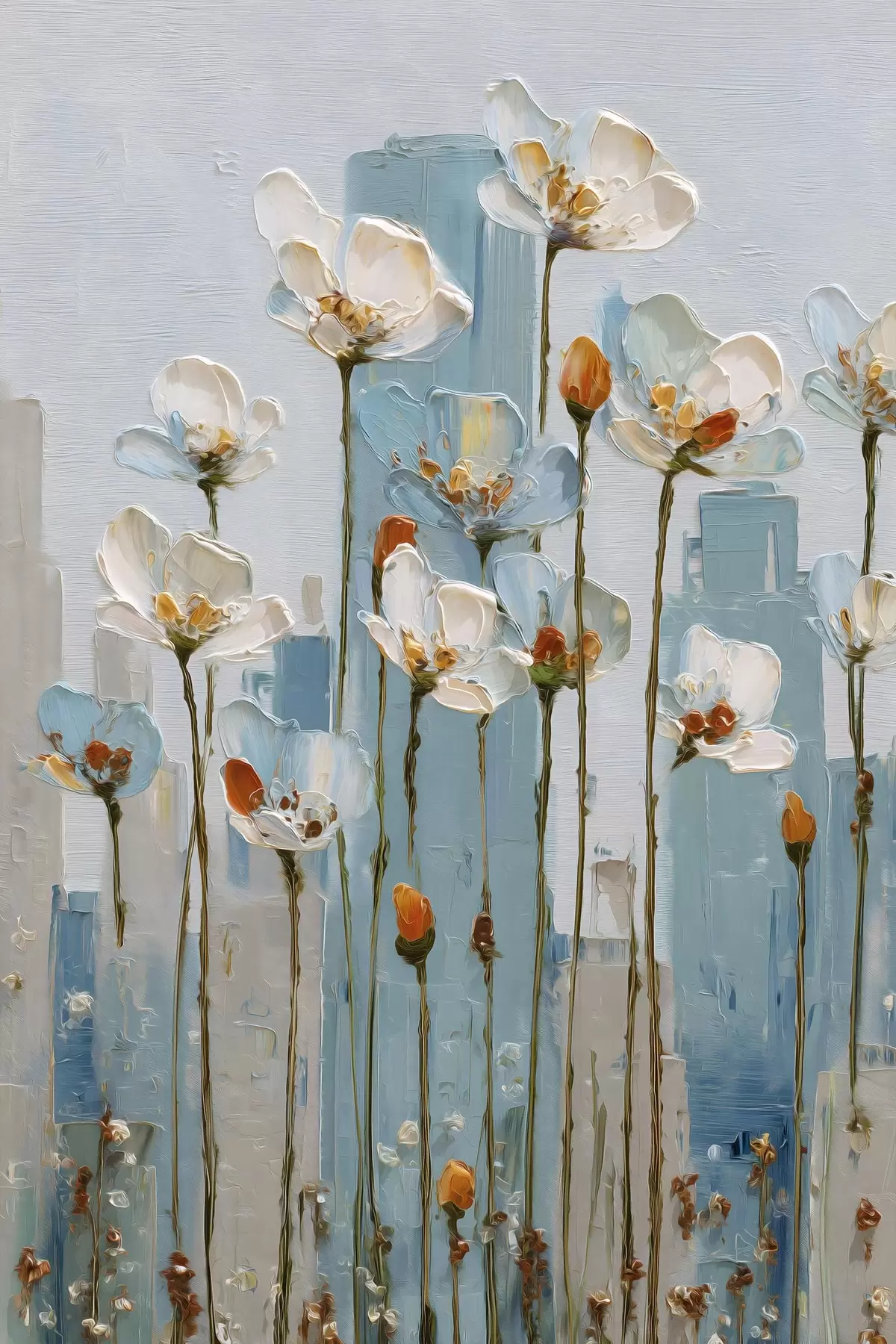 Picture flowers against a city backdrop, in the style of oil painting Nr s48785