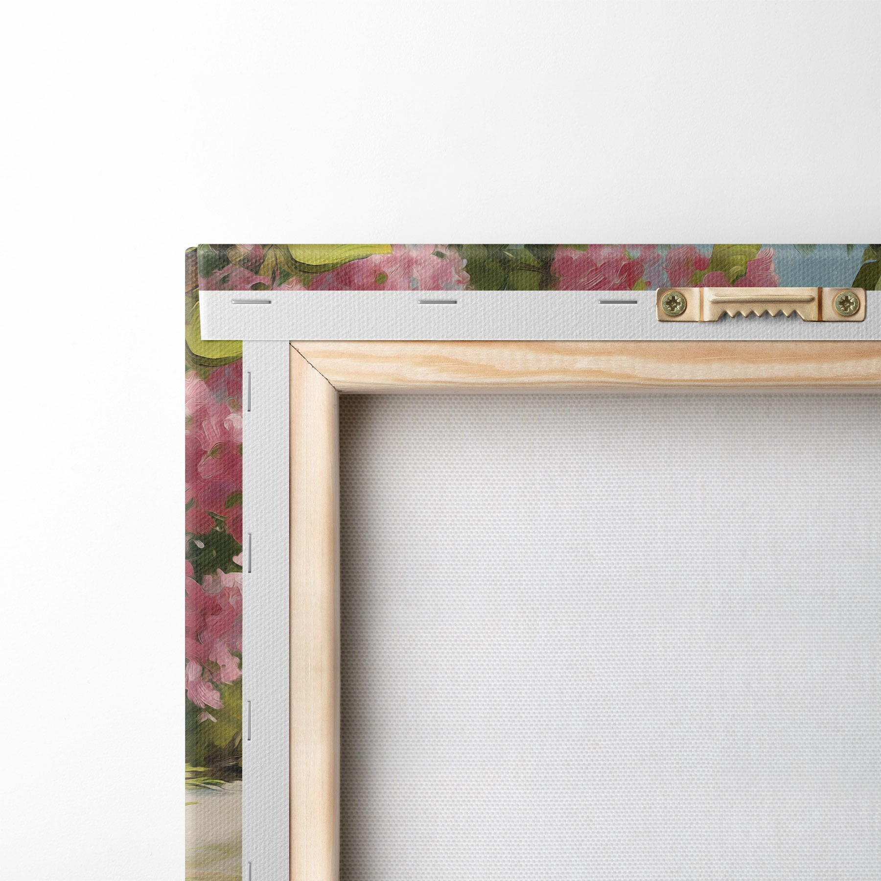 To stretch the canvas on stretcher bars without damaging the image, we use mirrored image.