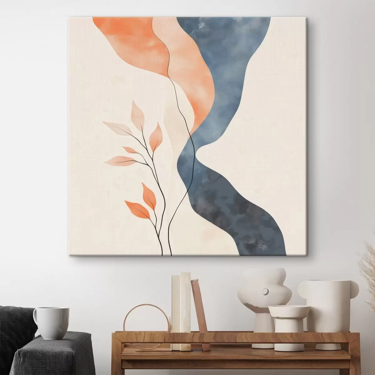 wall murals Floral composition with flowing lines in a blue-orange palette s48837