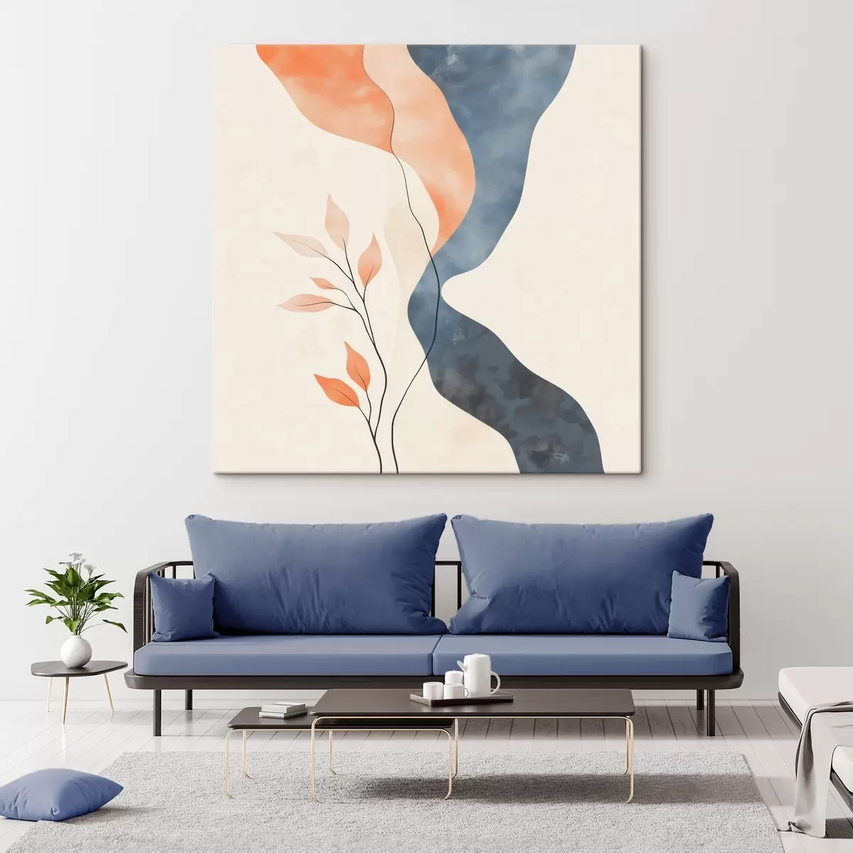 Picture Floral composition with flowing lines in a blue-orange palette Nr s48837