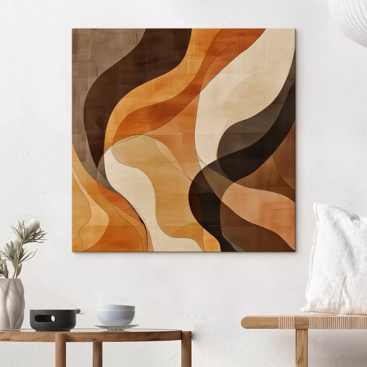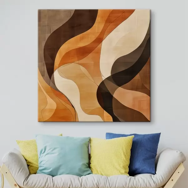Picture Abstract composition with dynamic wavy lines in a terracotta-brown palette Nr s48851