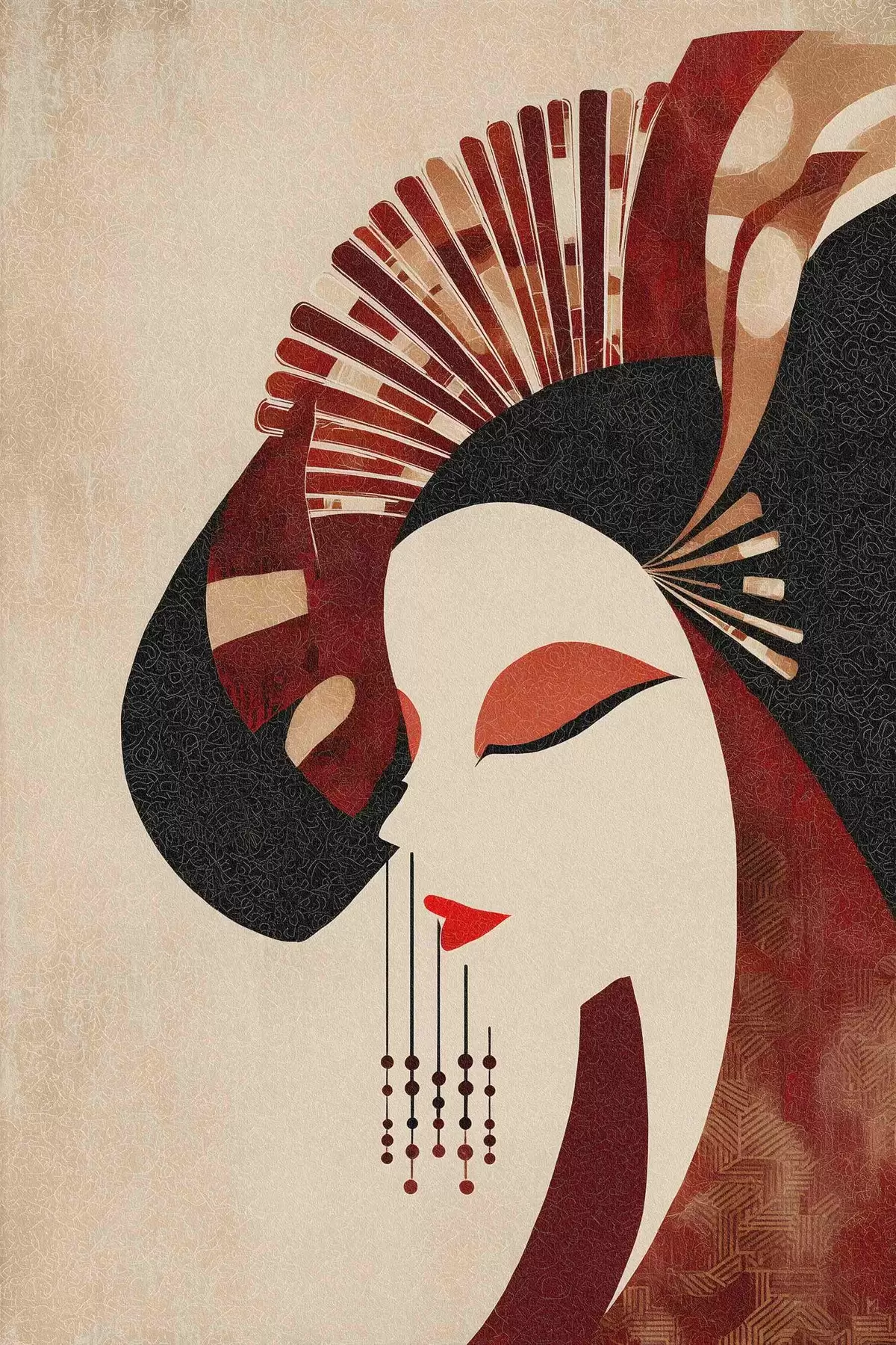 Picture stylized portrait of a woman, inspired by japanese and art deco aesthetics Nr s48994