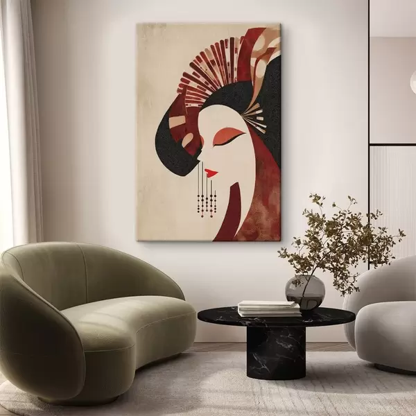 wall murals stylized portrait of a woman, inspired by japanese and art deco aesthetics s48994