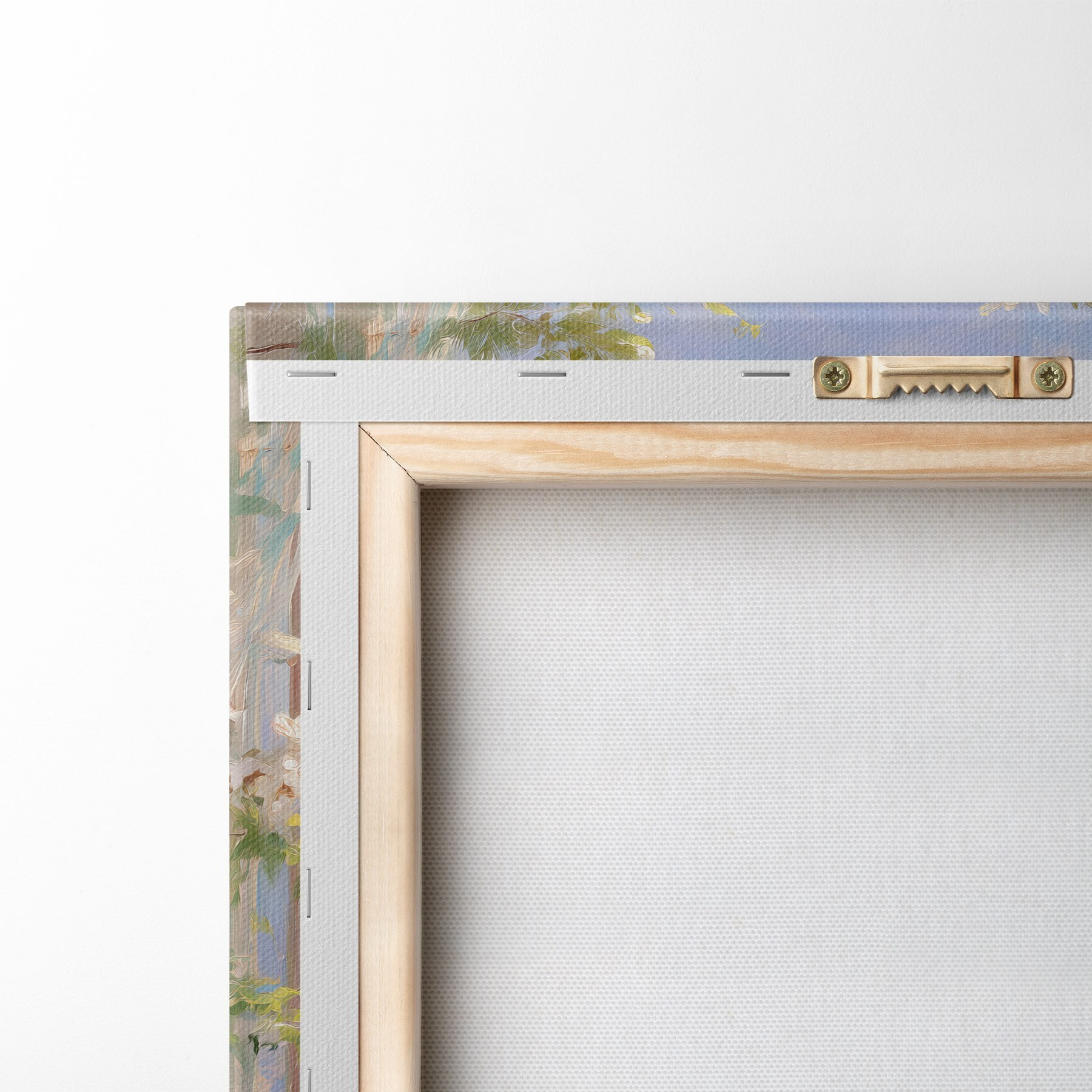 To stretch the canvas on stretcher bars without damaging the image, we use mirrored image.