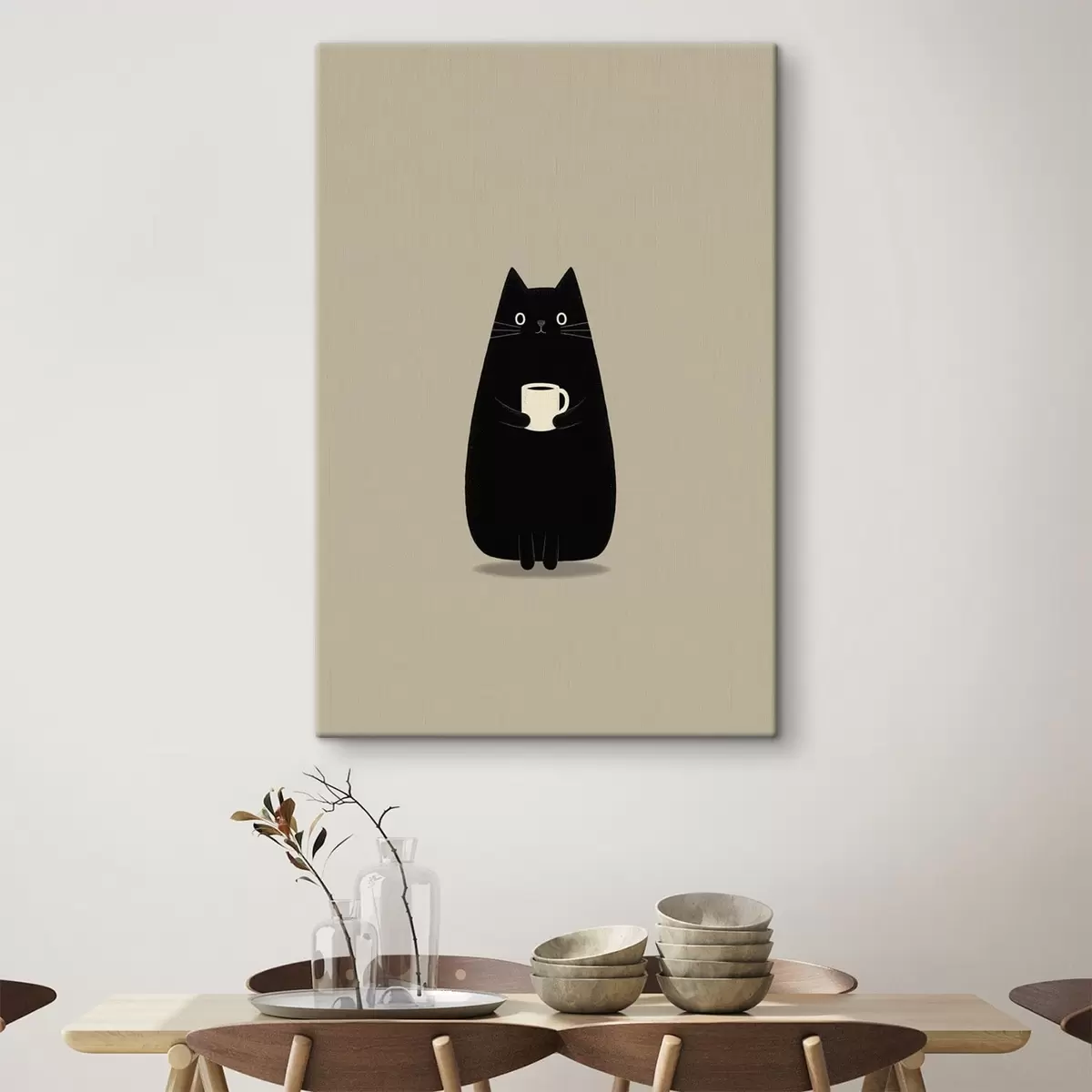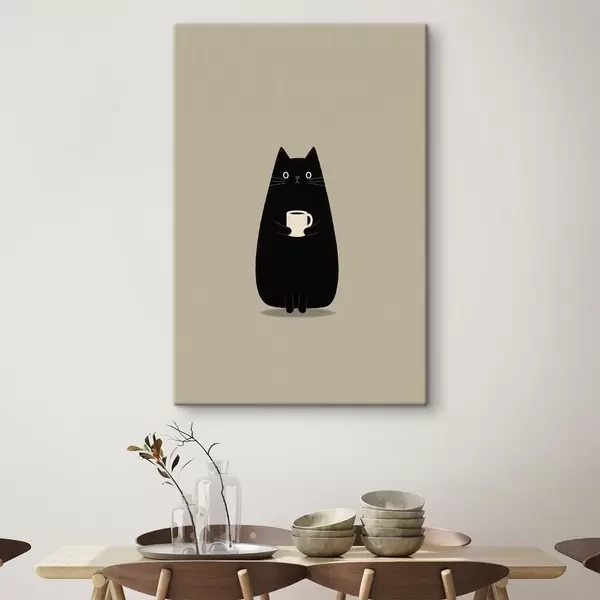 wall murals Black Cat with a Cup s49030
