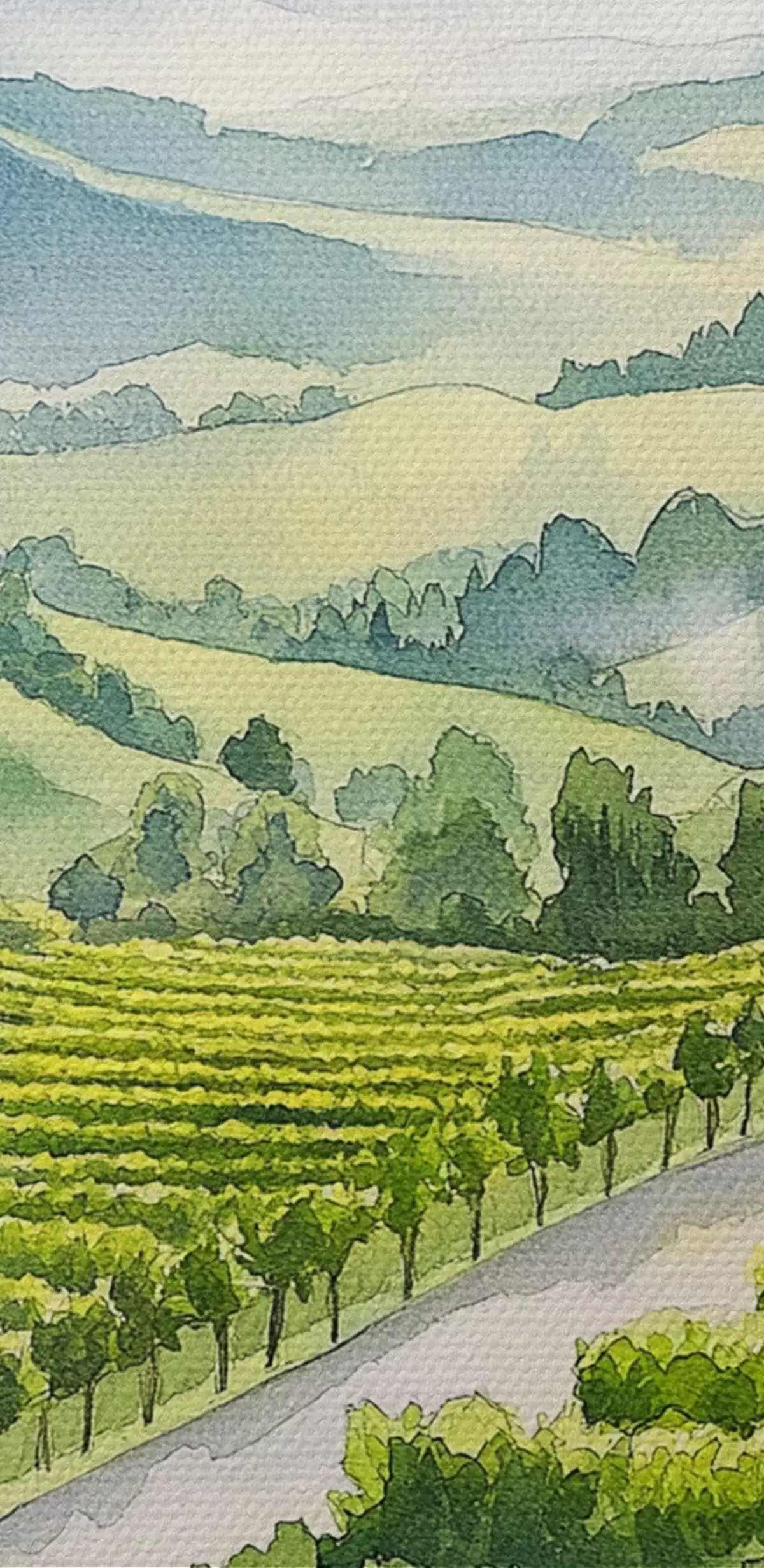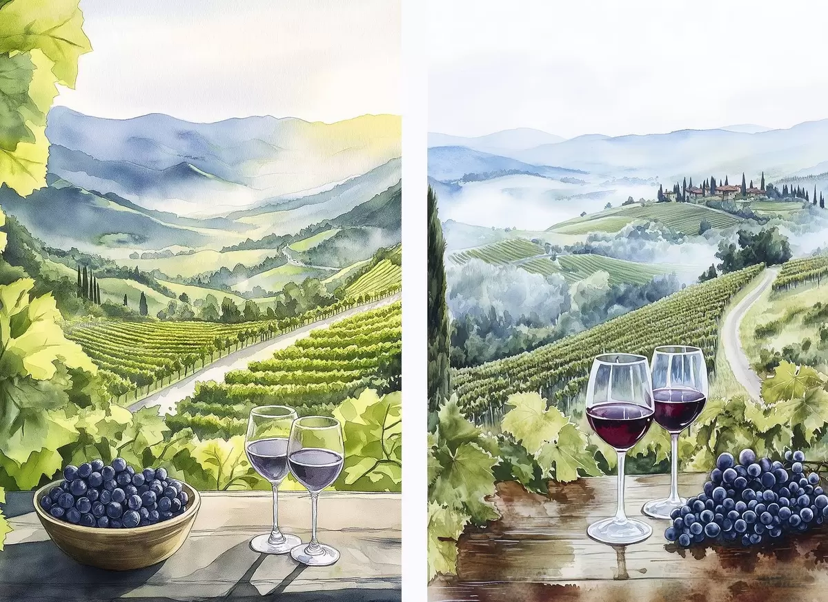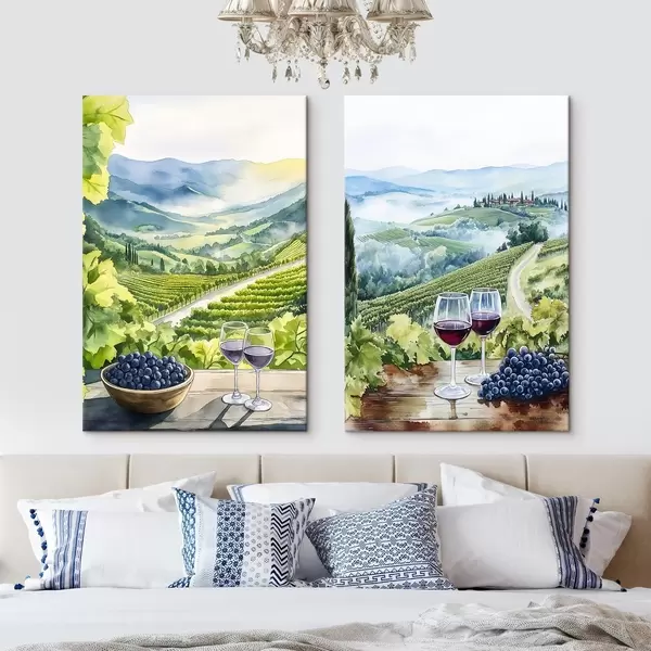 murales Hermosos paisajes de la Toscana, patios de uva, copas de vino, estilo acuarela, Italia m00408