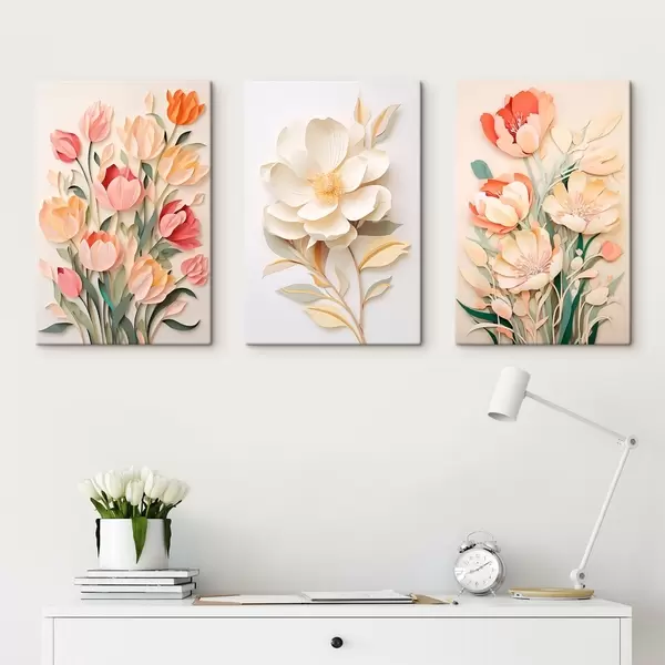 Hay tres tipos de material disponibles para pedidos: Lienzo Económico - material denso y duradero para impresión digital, idéntico al lienzo de pintor, superficie impermeable, reproducción realista de los detalles, material de grano medio. Lienzo Premium - la textura se asemeja a la de un lienzo de pintor (pequeños hilos entrelazados). Reproducción suave y detallada de la imagen sobre una superficie mate. Eco-Premium - tejido 100% algodón de alta calidad. Gracias a las fibras naturales de algodón, el material es duradero y resistente al desgaste. Excelente reproducción del color y el detalle.