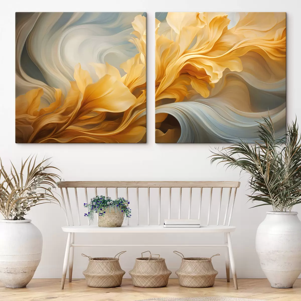 Hay tres tipos de material disponibles para pedidos: Lienzo Económico - material denso y duradero para impresión digital, idéntico al lienzo de pintor, superficie impermeable, reproducción realista de los detalles, material de grano medio. Lienzo Premium - la textura se asemeja a la de un lienzo de pintor (pequeños hilos entrelazados). Reproducción suave y detallada de la imagen sobre una superficie mate. Eco-Premium - tejido 100% algodón de alta calidad. Gracias a las fibras naturales de algodón, el material es duradero y resistente al desgaste. Excelente reproducción del color y el detalle.