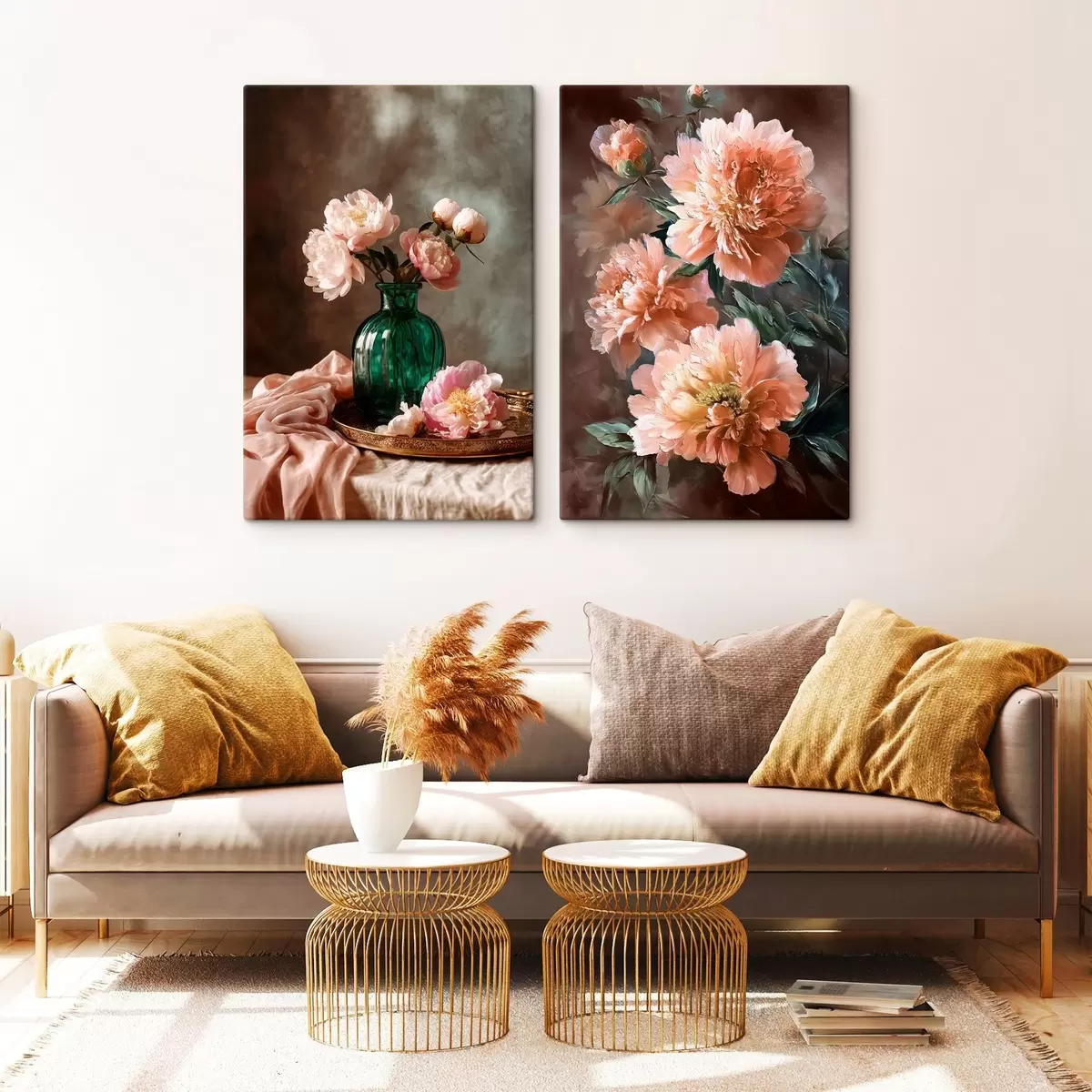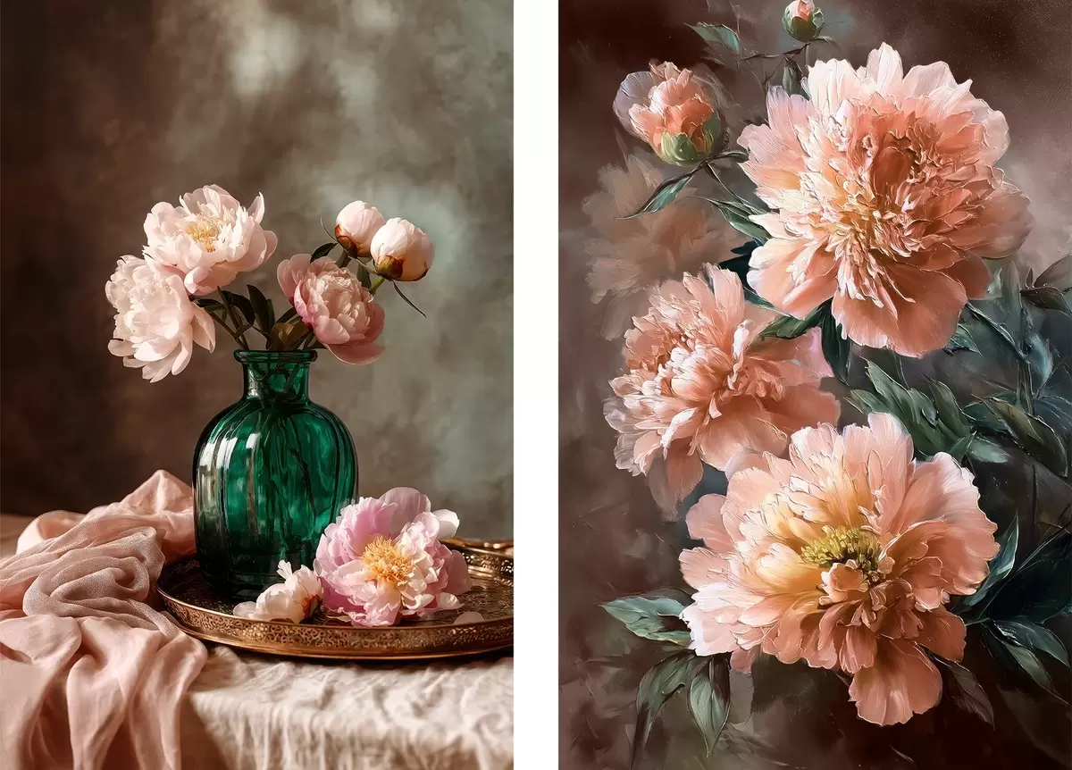murales Composición pareada con peonías rosas en jarrón y sobre lienzo m00578