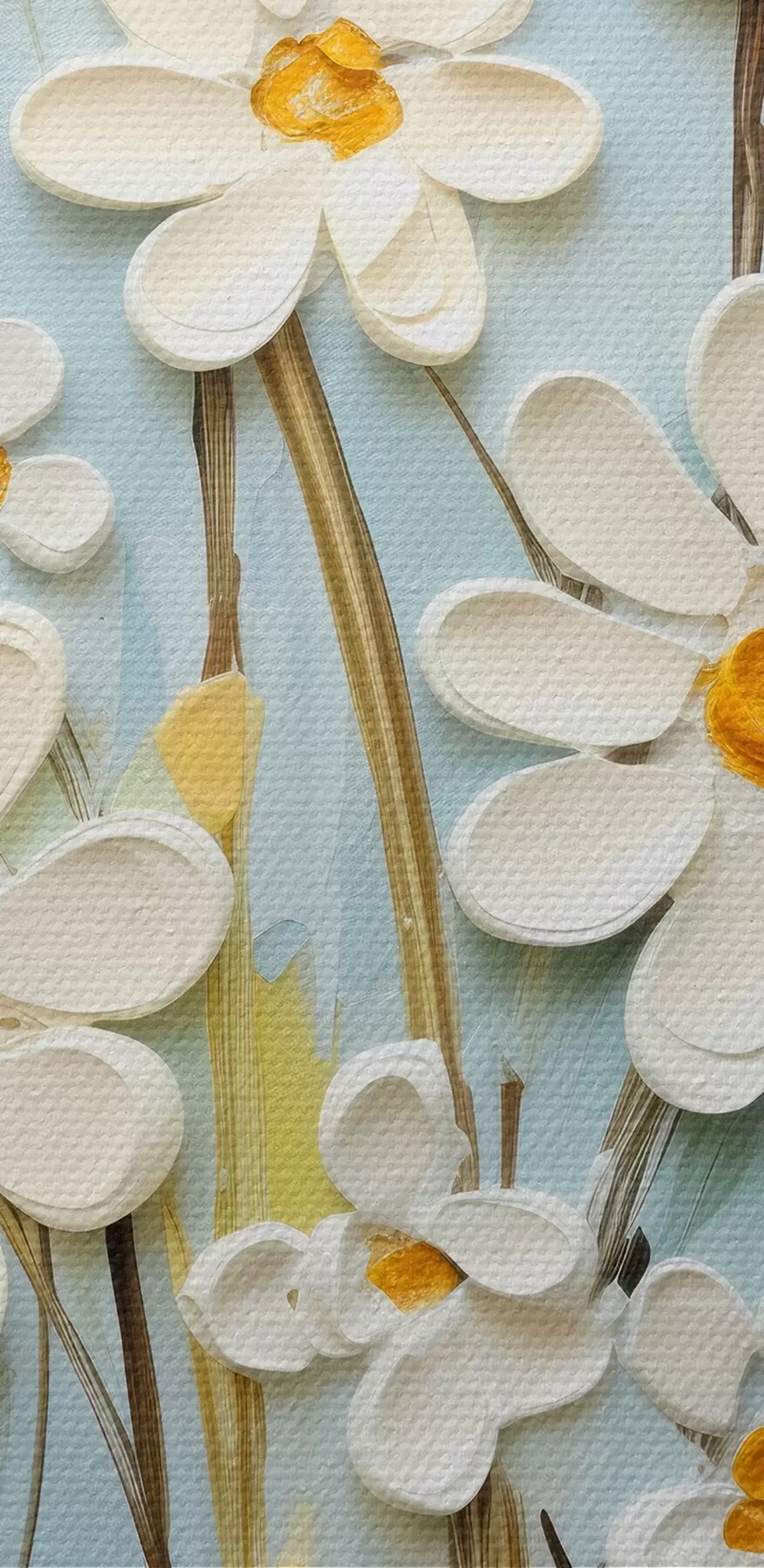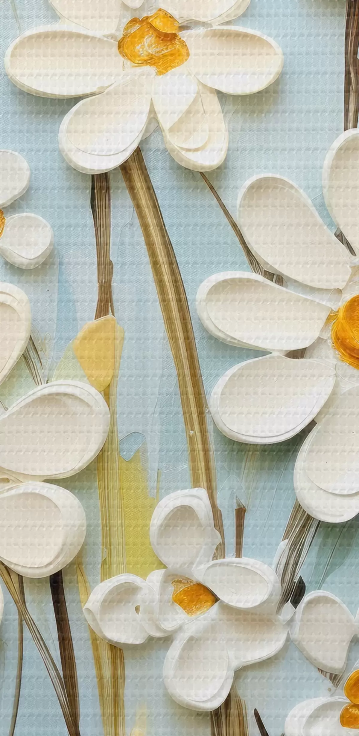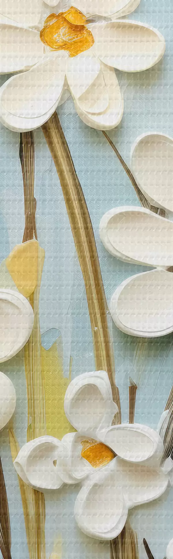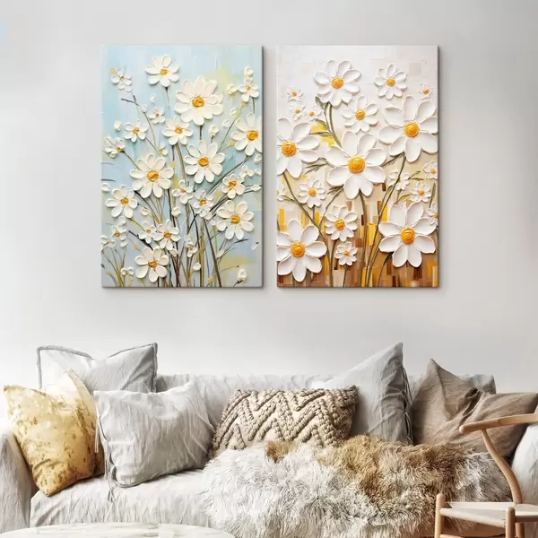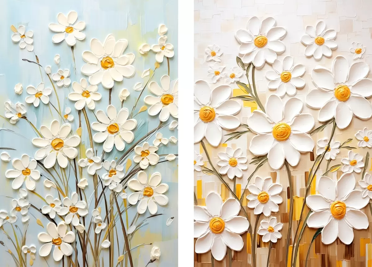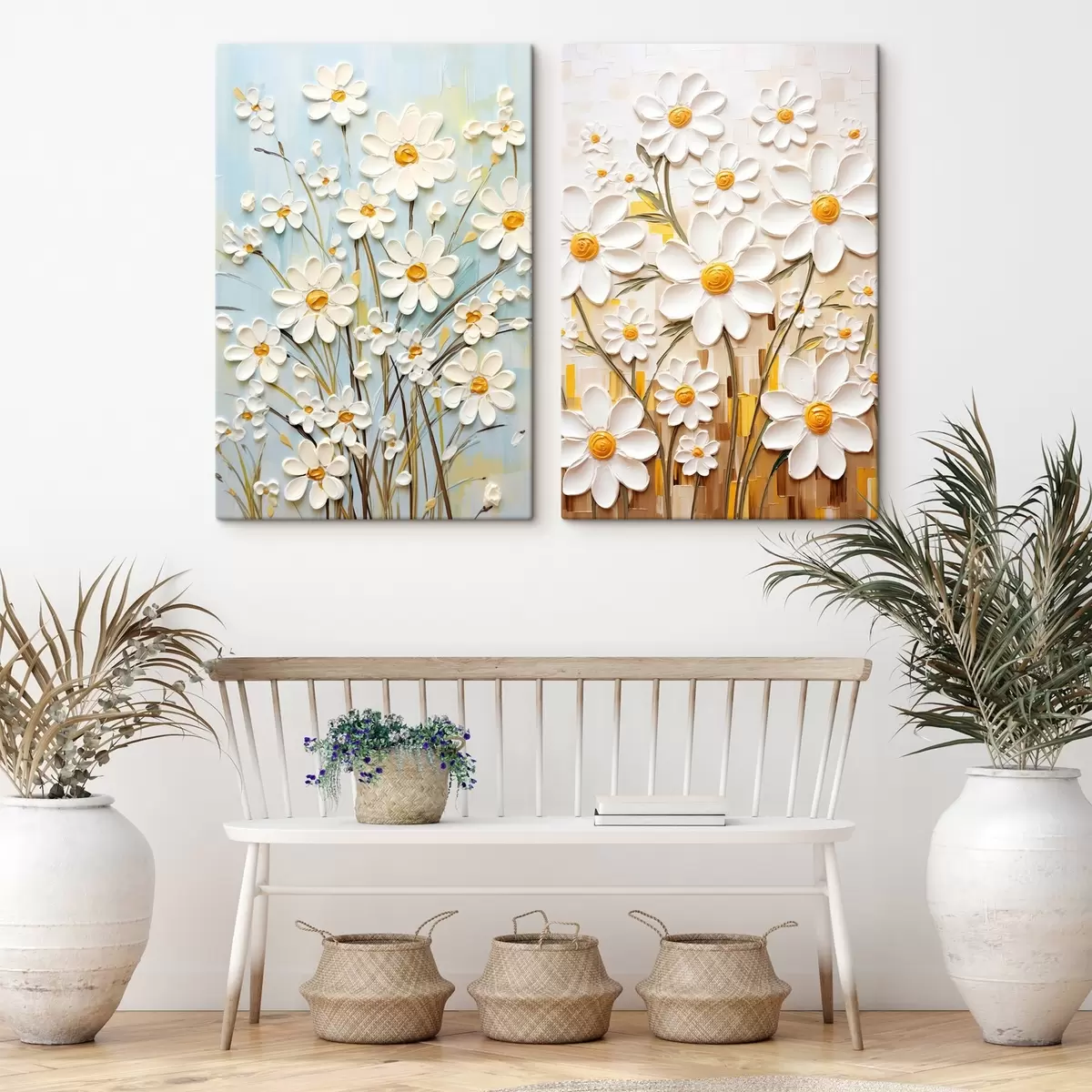 murales Flores soleadas: dúo artístico con margaritas volumétricas y toques amarillos m00580