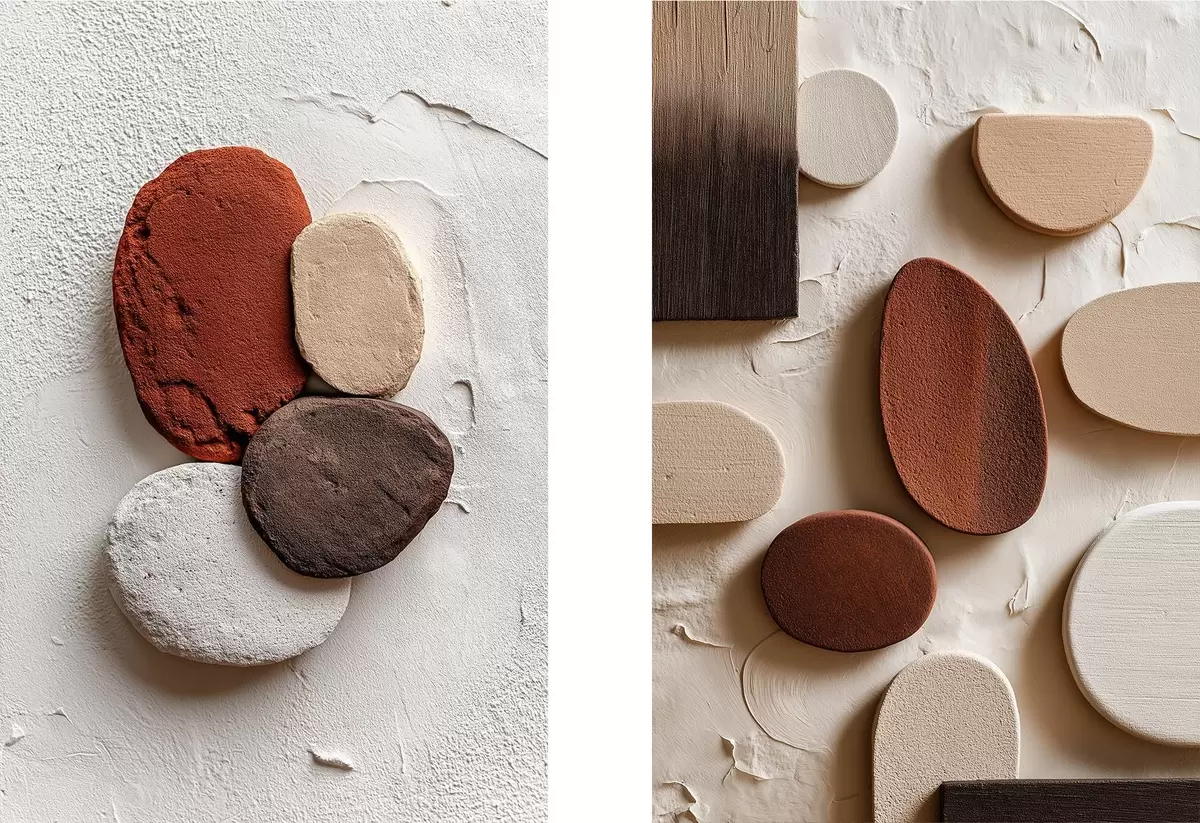murales Composiciones abstractas con formas geométricas volumétricas sobre fondo texturizado m00597