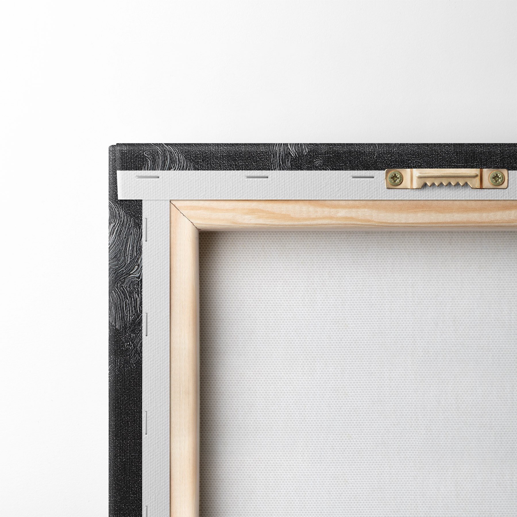 Vendemos cuadros en bastidor: se trata de un marco de madera sobre el que se extiende el lienzo. Este cuadro no necesita marco; puedes colgarlo directamente en la pared.