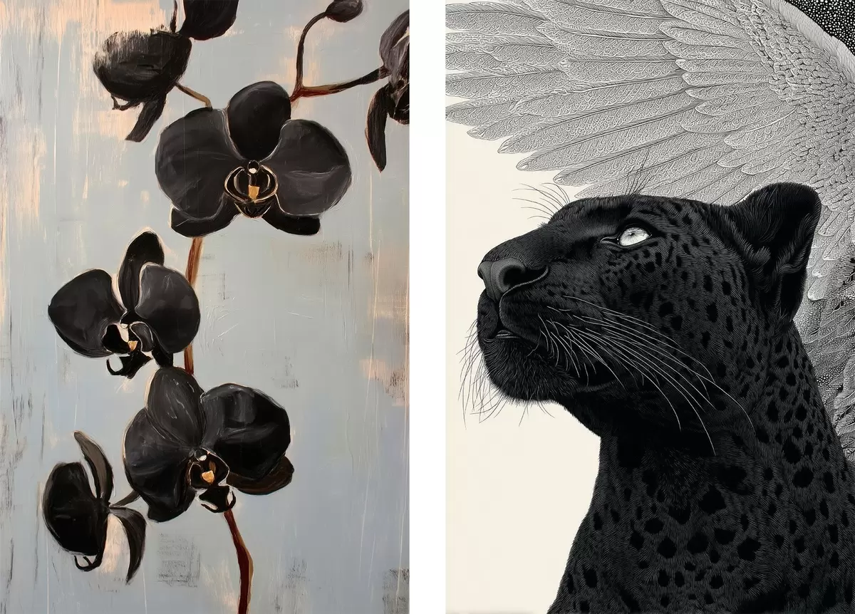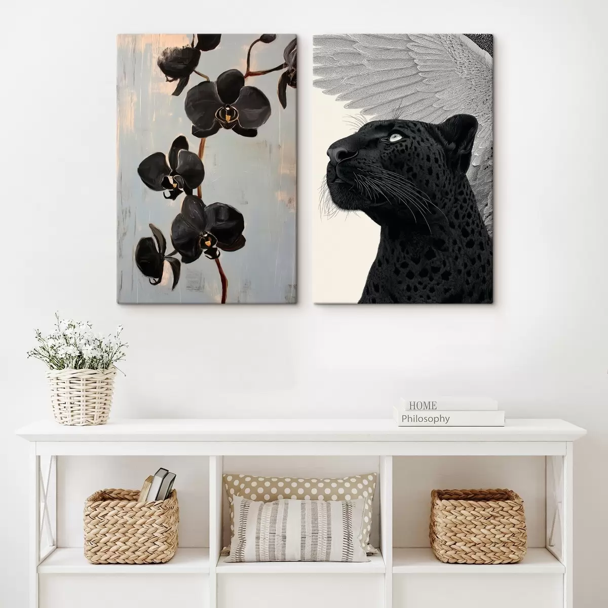 murales Orquídeas oscuras y bestia alada: composición artística m00640