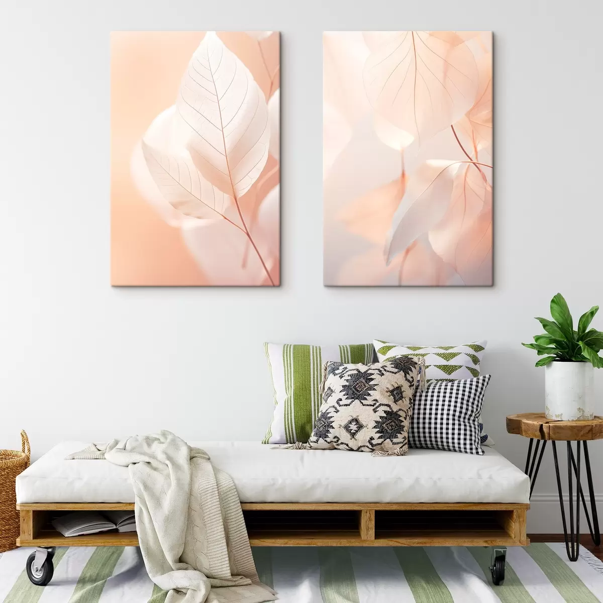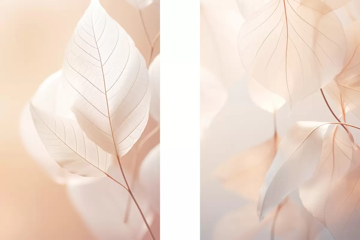 murales Primer plano de hojas translúcidas con delicadas venas, suave paleta de colores melocotón y blanco, fondo difuminado m00647