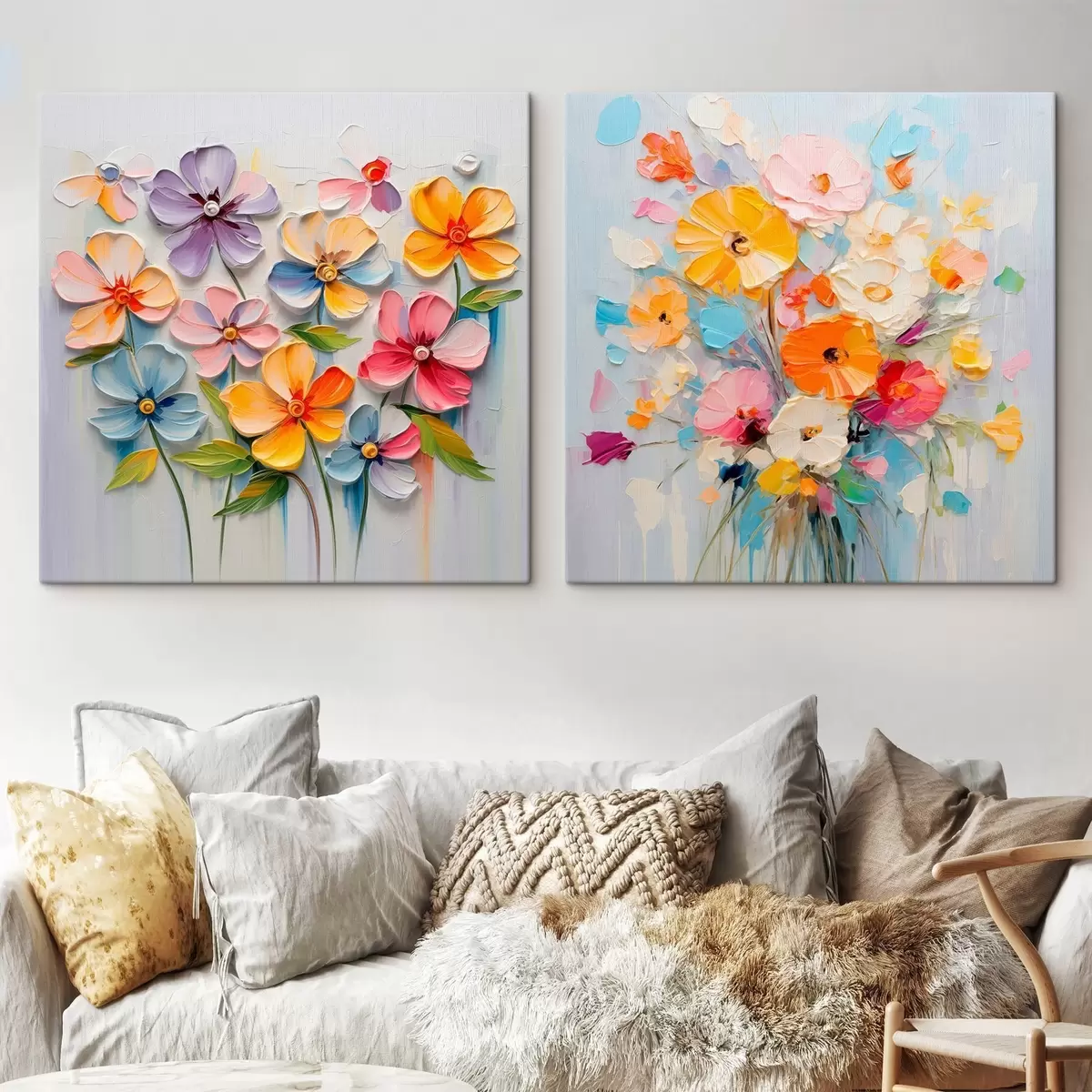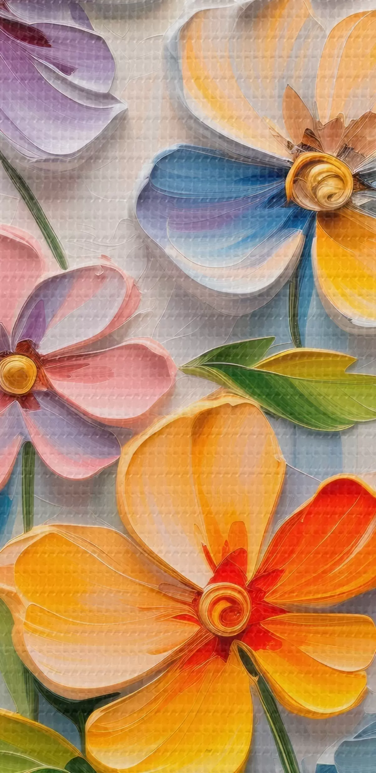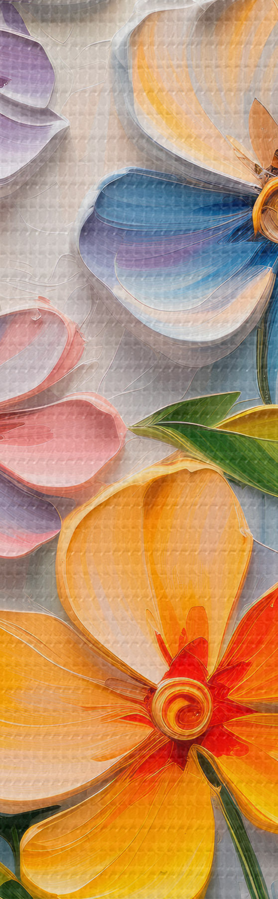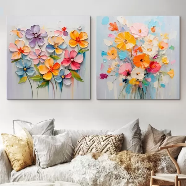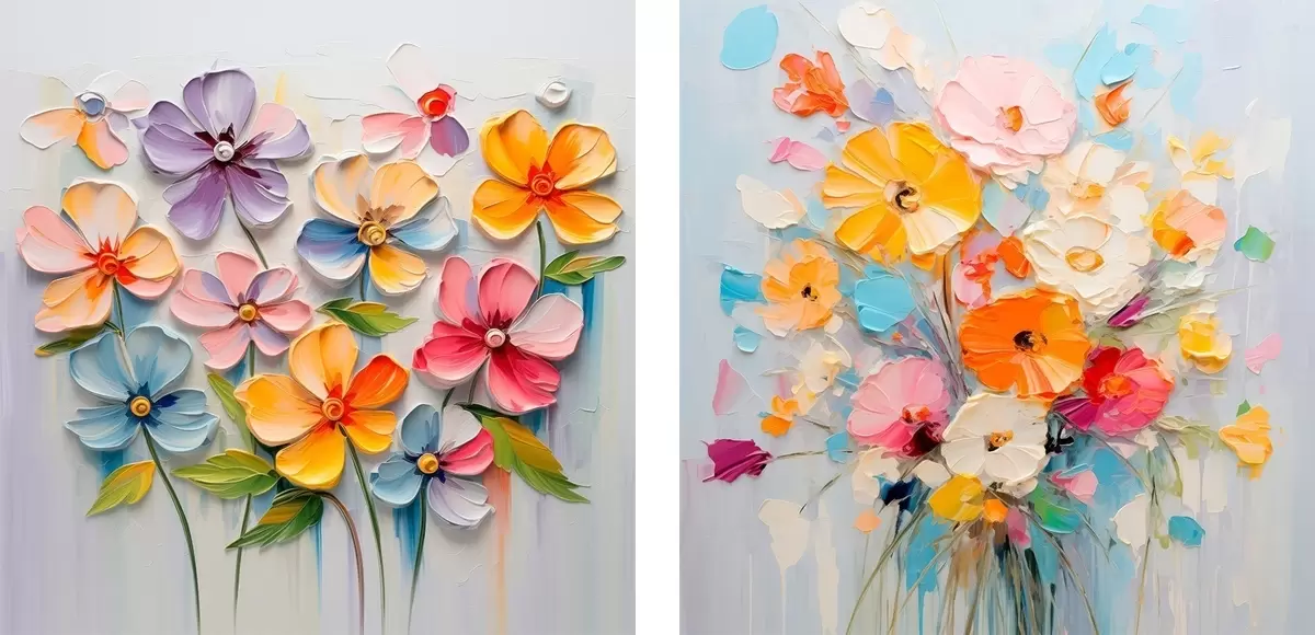 murales Composiciones abstractas de flores brillantes realizadas en técnica impasto m00662