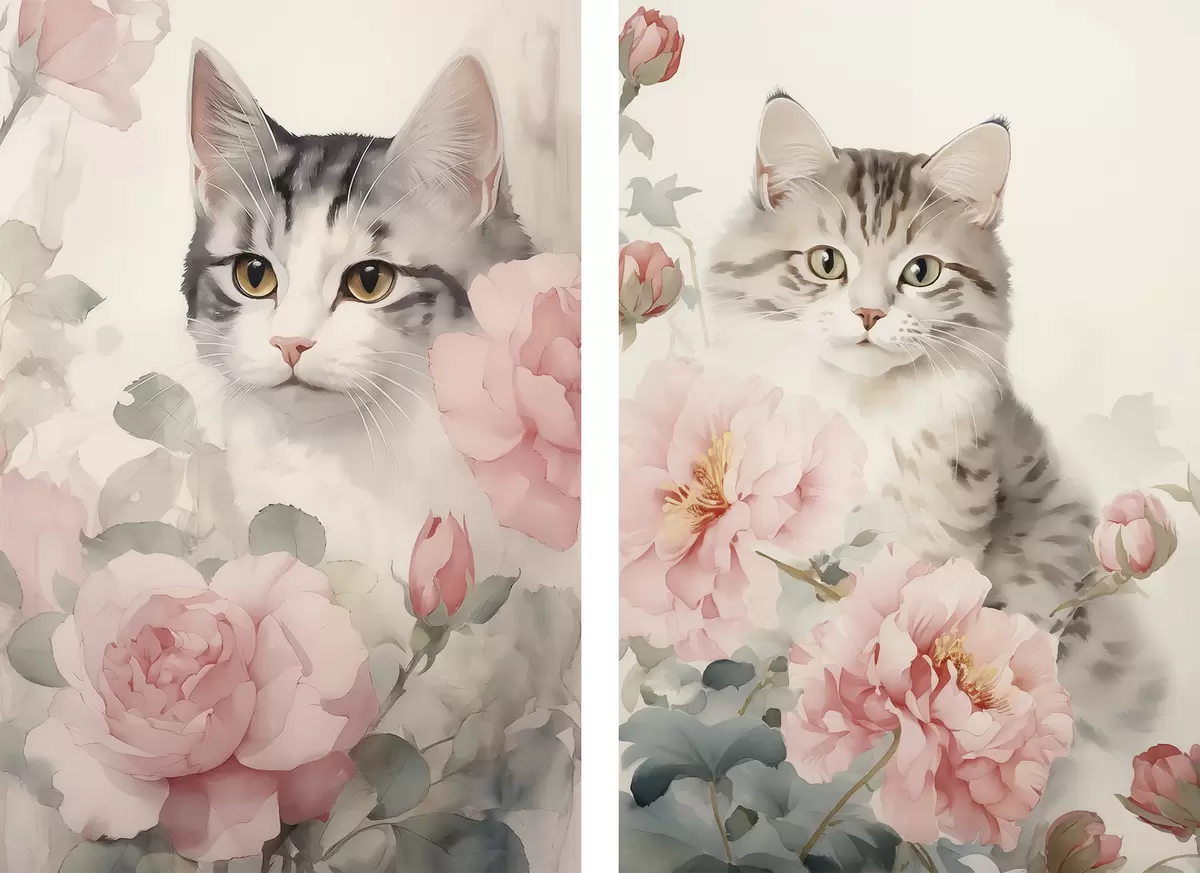 murales Gato entre flores m00676