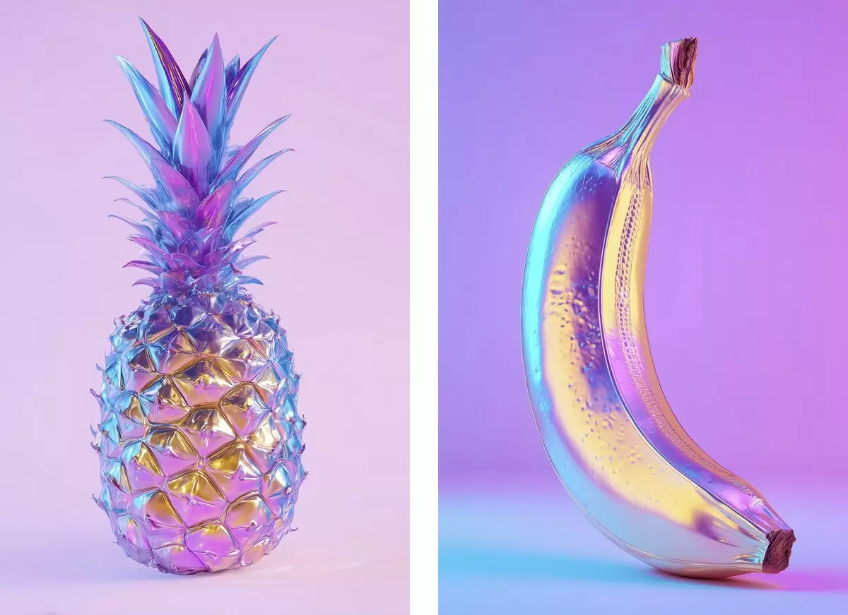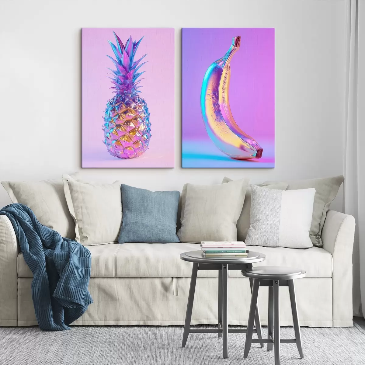 murales piña y plátano brillantes y lustrosos al estilo pop art m00737