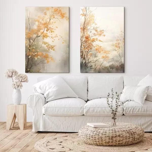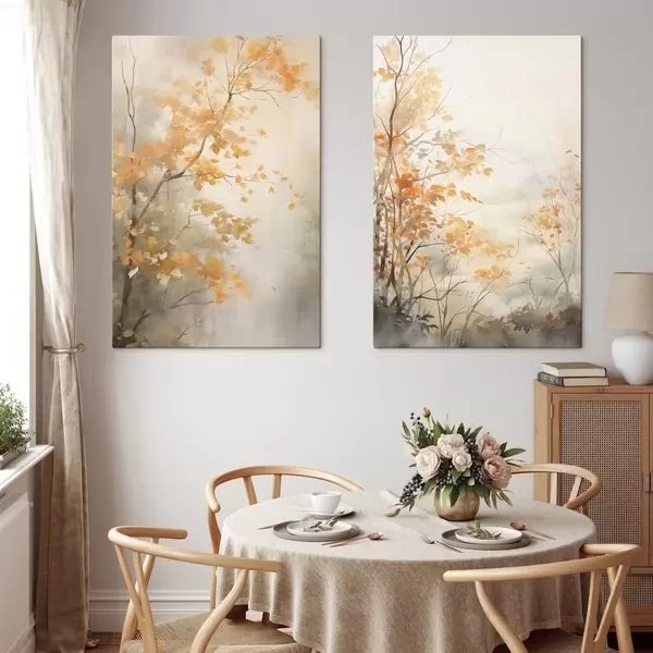 murales Árboles otoñales con hojas y ramas anaranjadas, estilo acuarela suave, pinceladas delicadas m00826