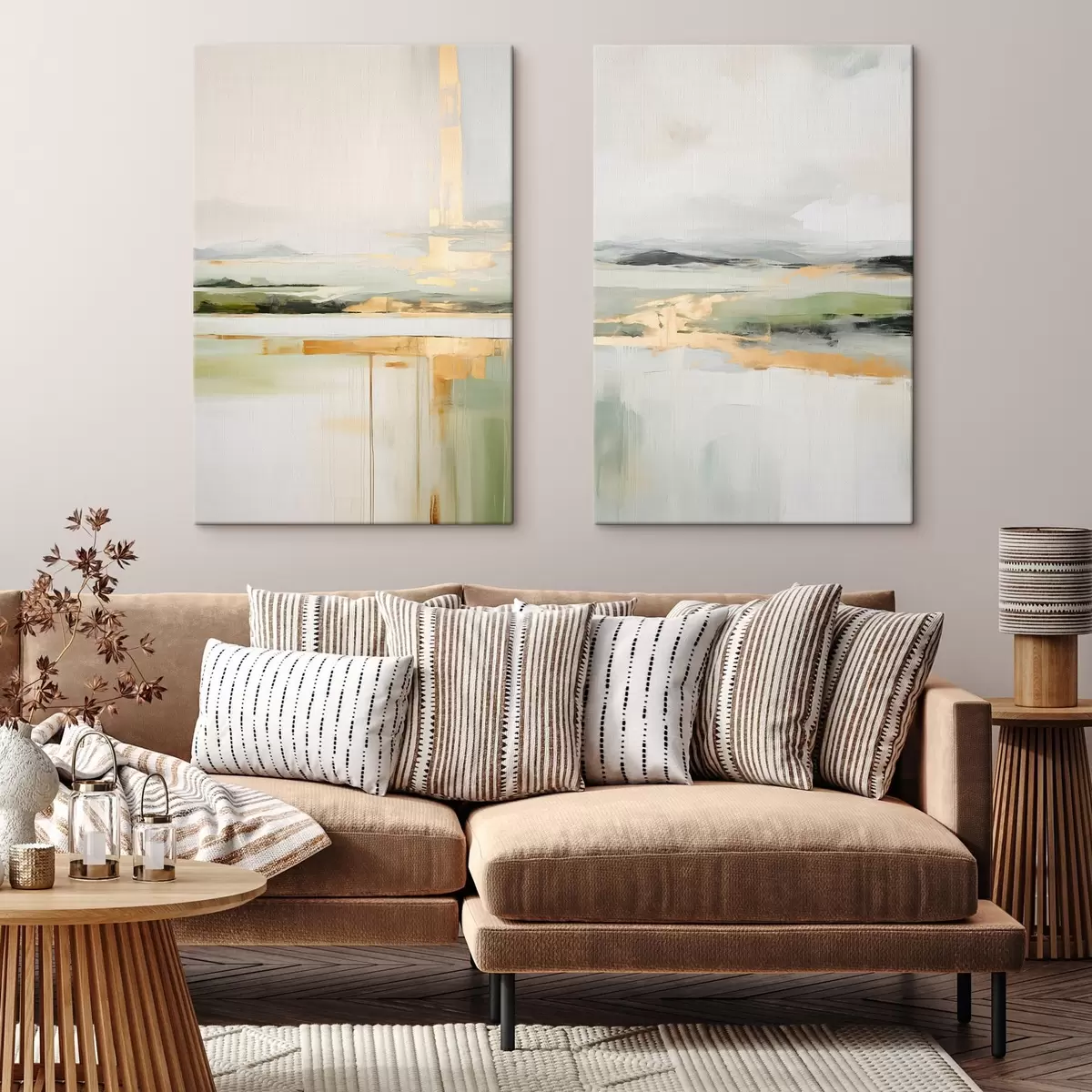 murales Paisaje abstracto con toques amarillos, una composición minimalista de tierra, agua y cielo, con colores apagados m00877