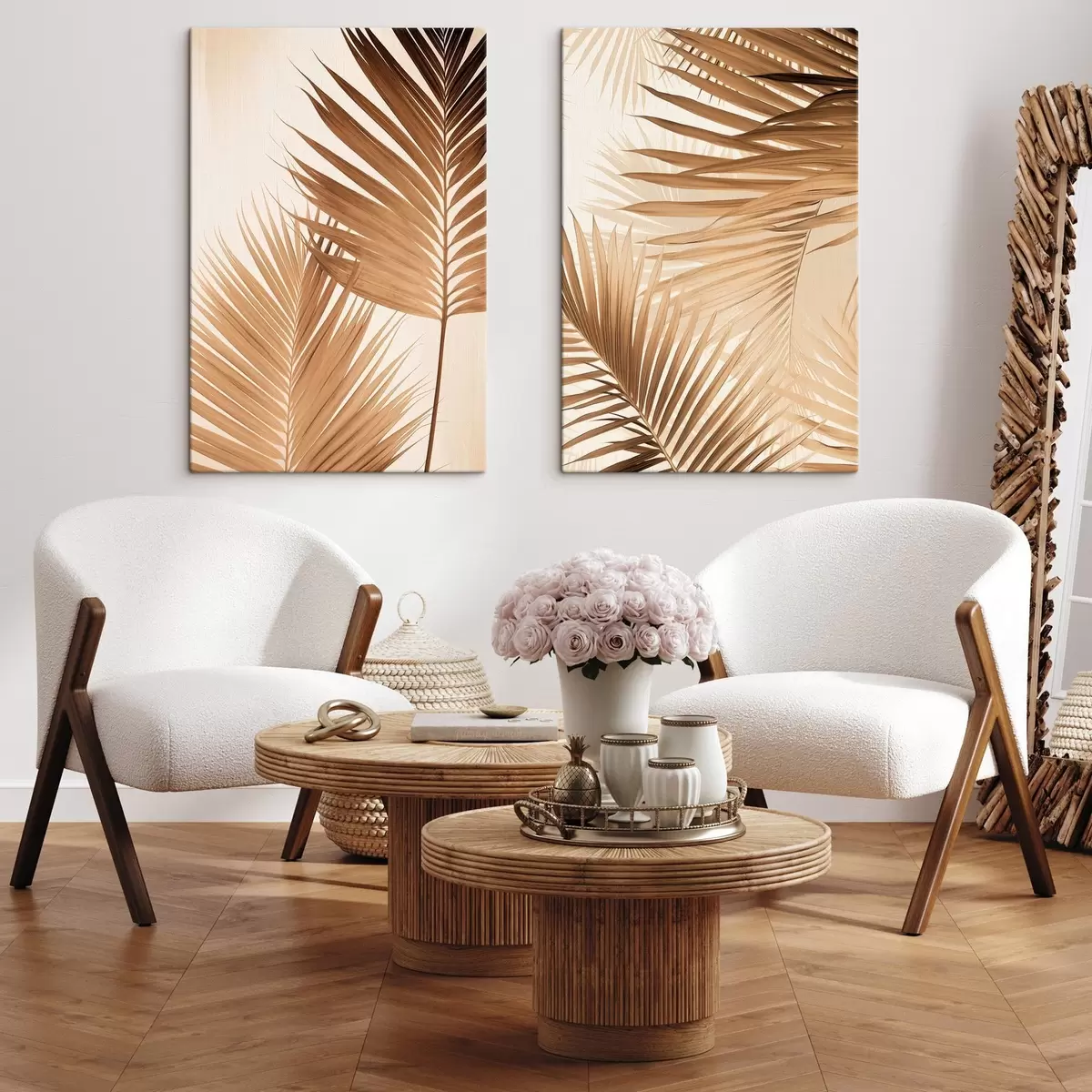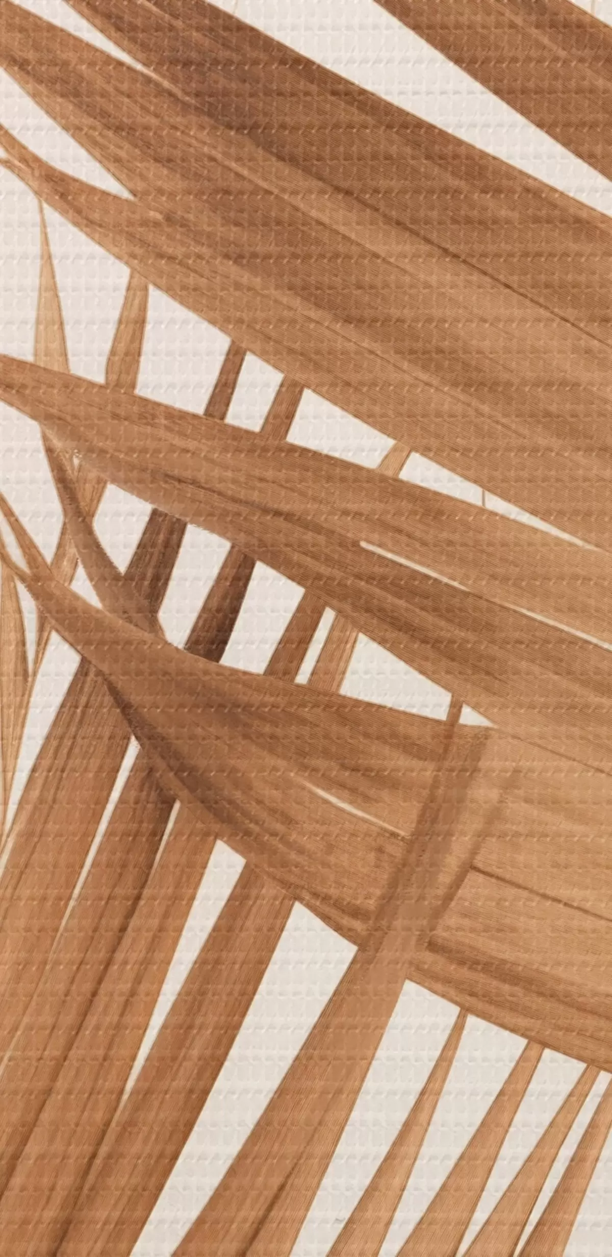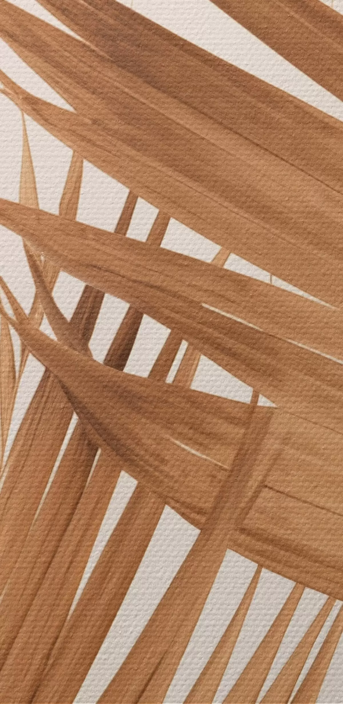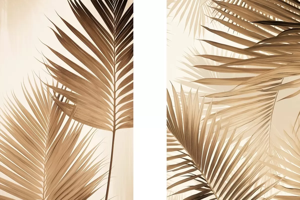 murales Hojas de palmera en tonos marrones, fondo neutro, estilo minimalista, iluminación natural, ambiente tropical m00880
