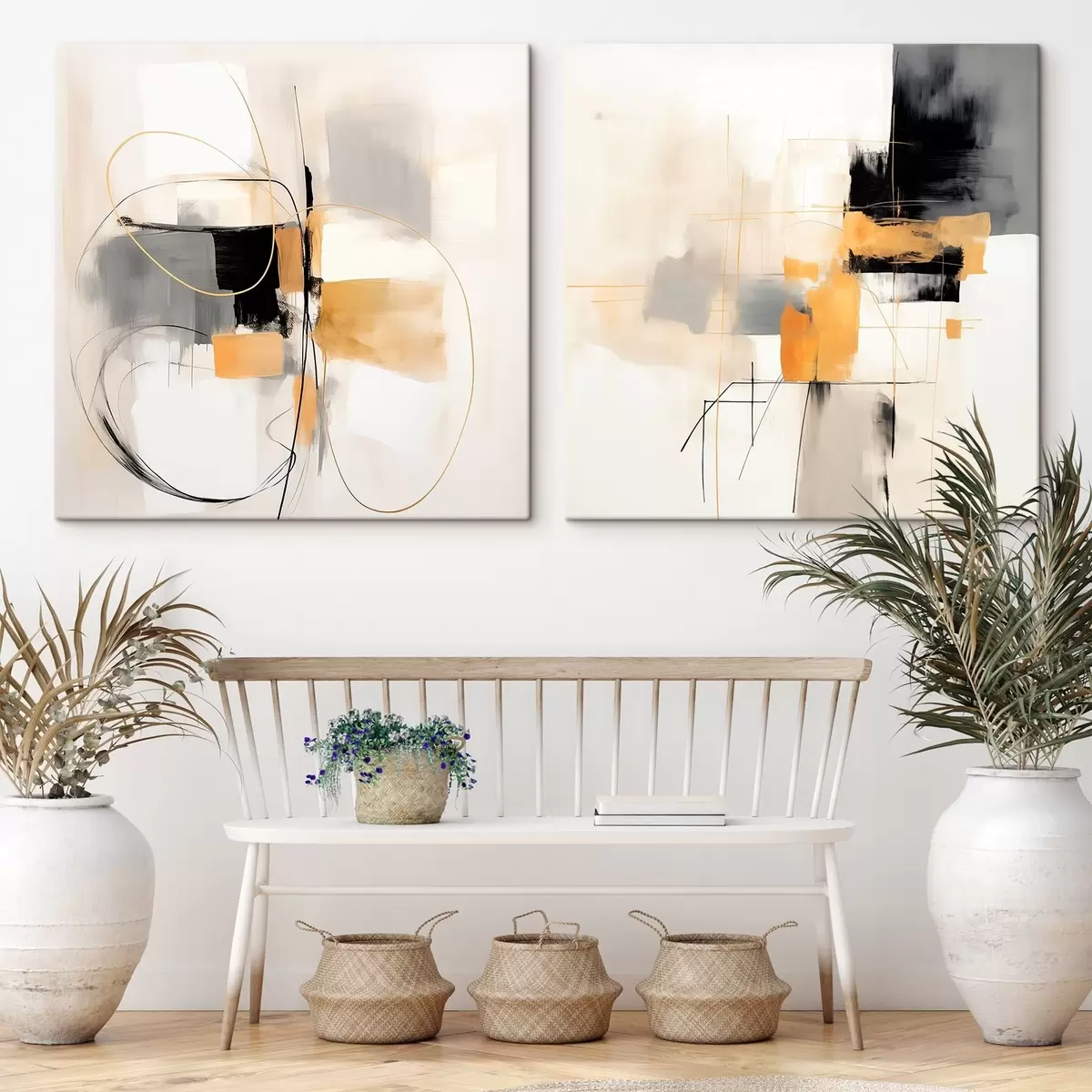 murales Geometría abstracta, ocre, gris y negro m00899
