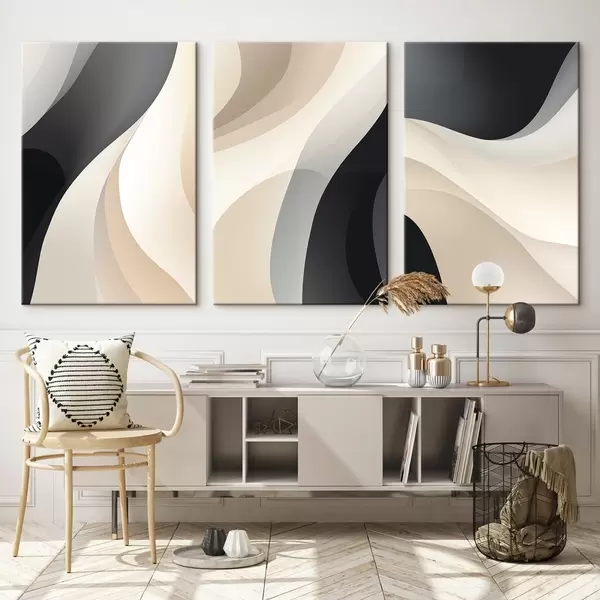 murales Curvas fluidas minimalistas en color crema, gris pardo y negro m00962