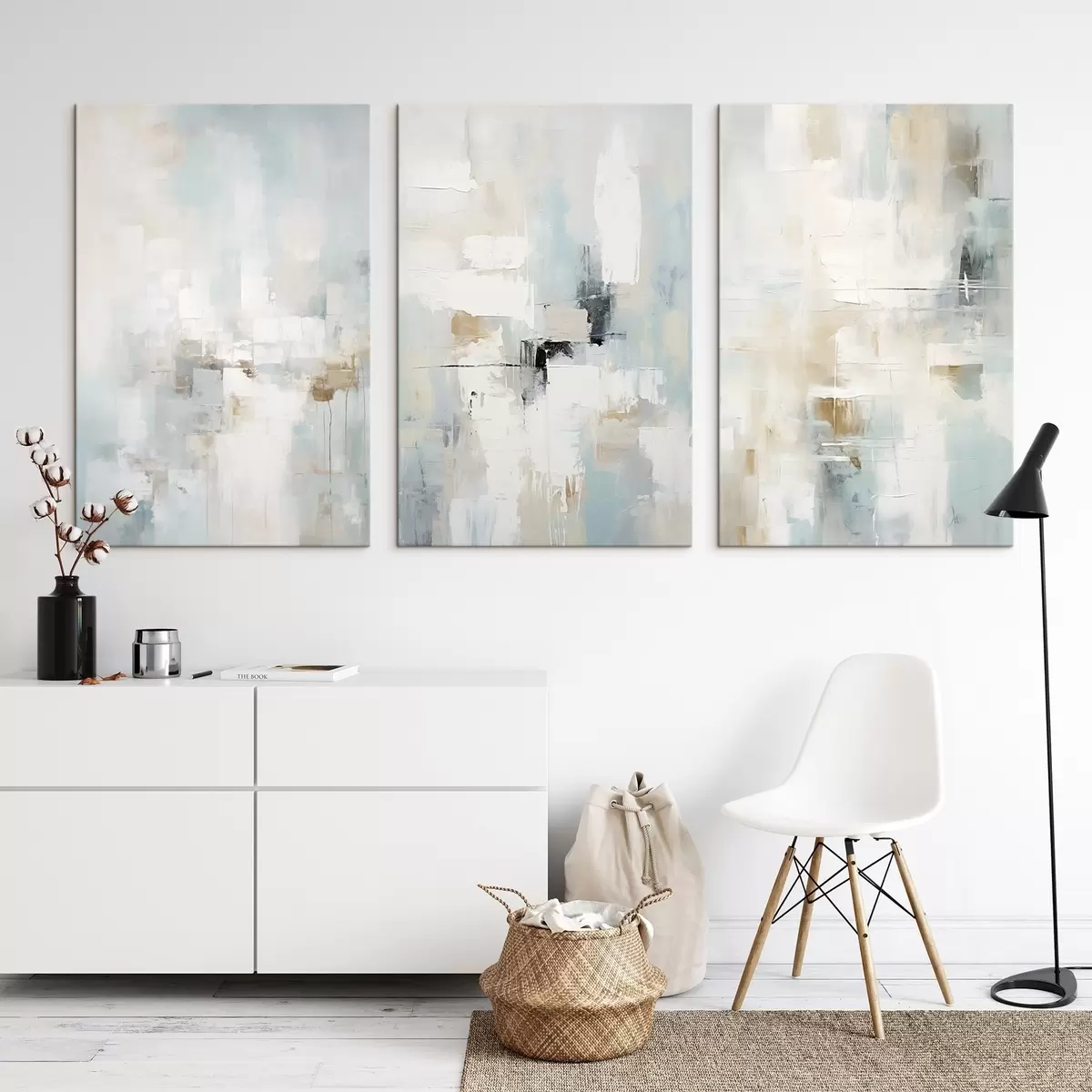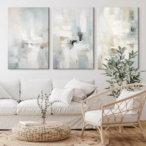 murales Paleta abstracta y aireada: blanco, beige y azul pálido m00966
