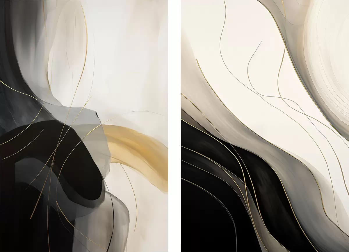 murales Curvas monocromáticas con finos filamentos metálicos m00972