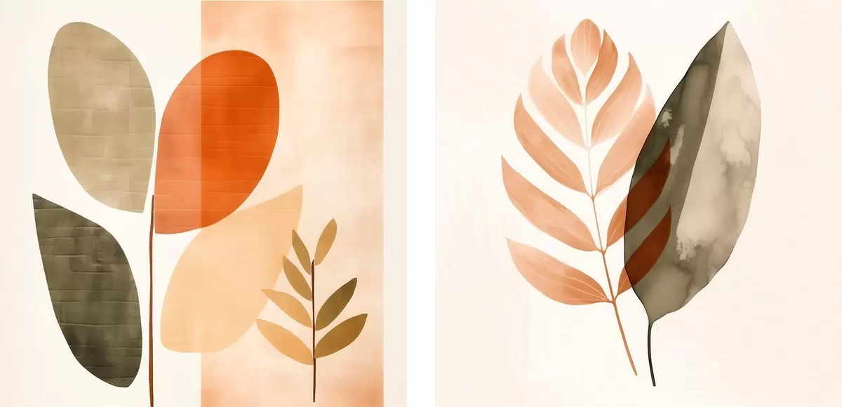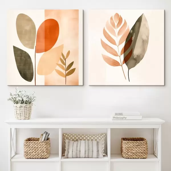 murales Díptico con motivos botánicos en una paleta de colores pastel m00983