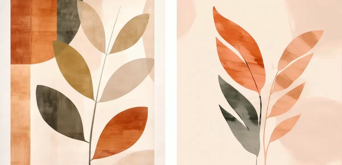 murales Representación estilizada de una planta en una gama de colores tranquilos m00984