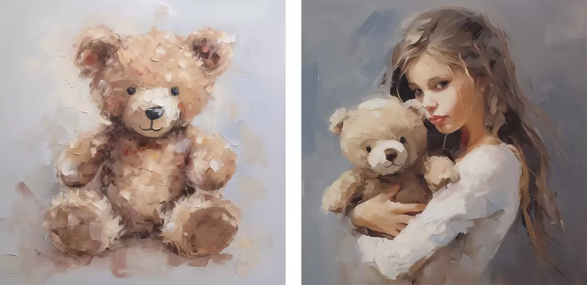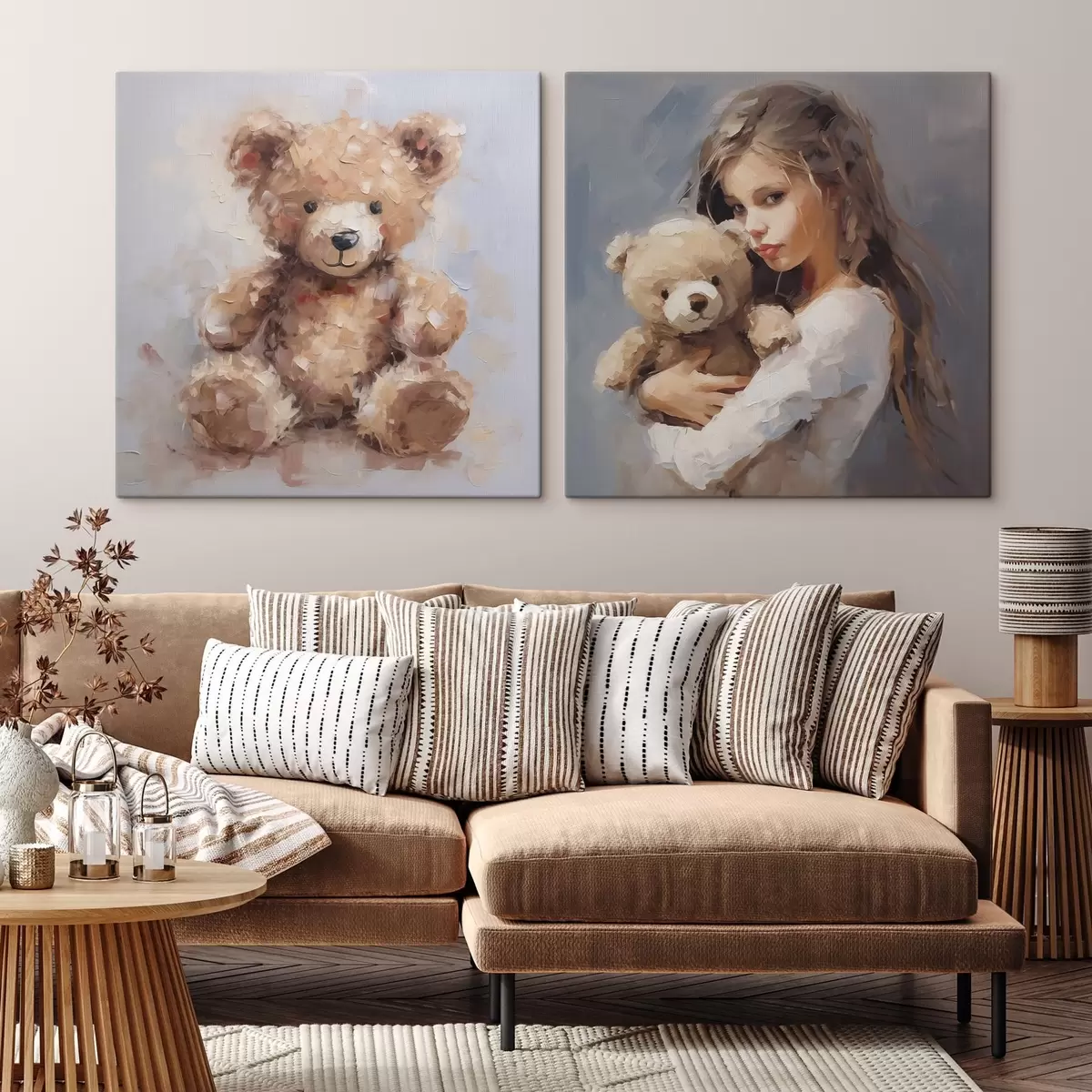 murales Niña con un oso de peluche, pintura de imitación m01029