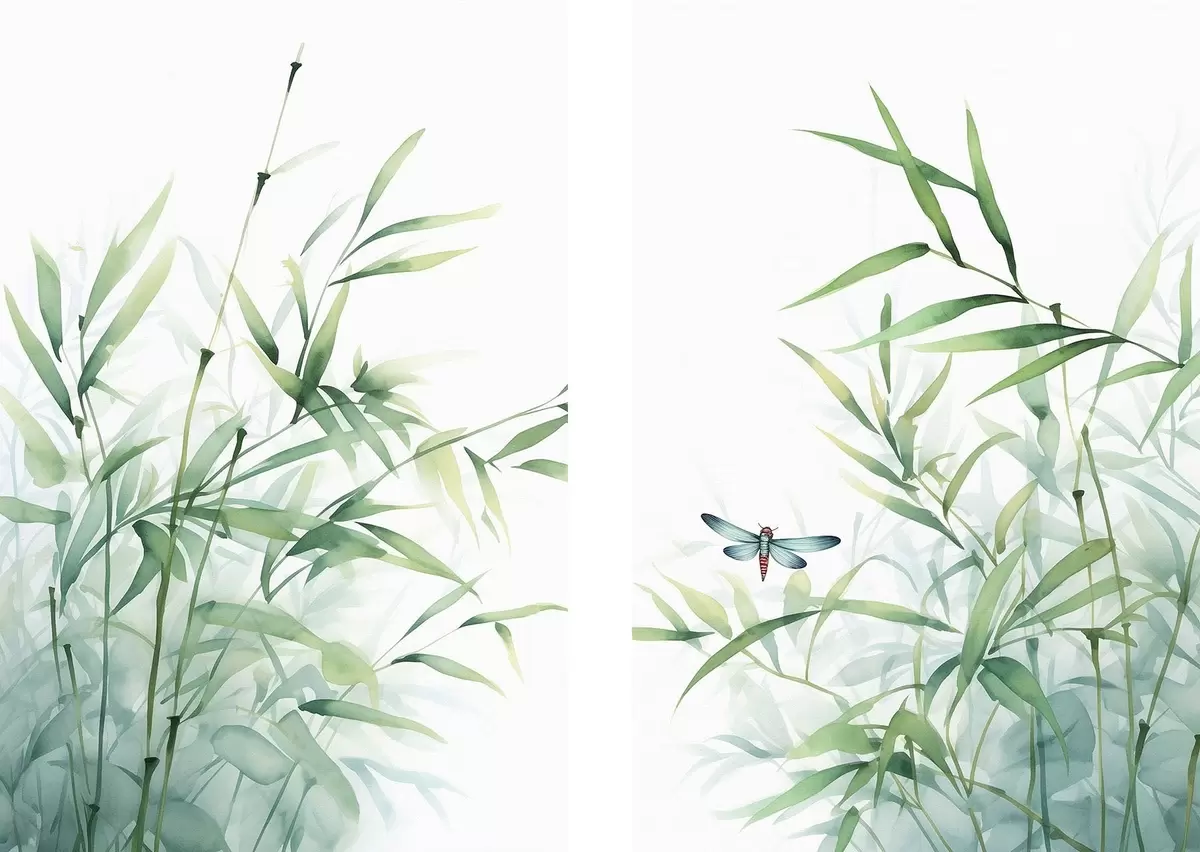 murales Plantas de bambú, imitación acuarela m01062