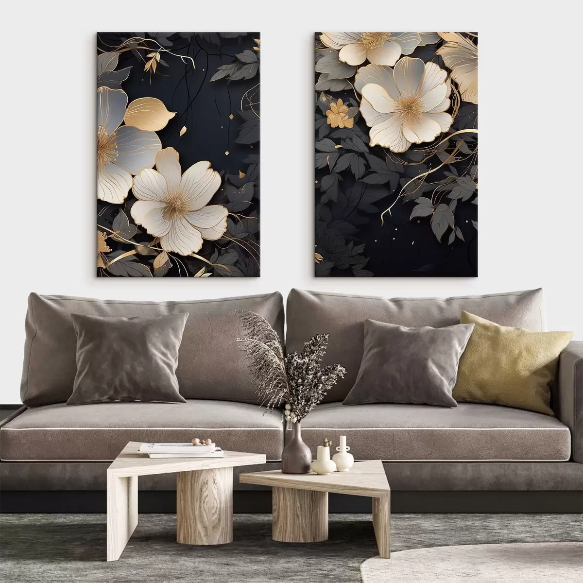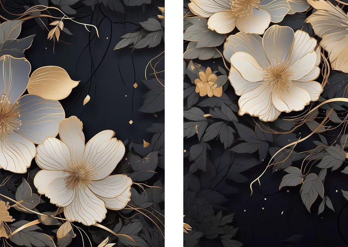 murales Grandes flores abstractas sobre fondo oscuro m01066