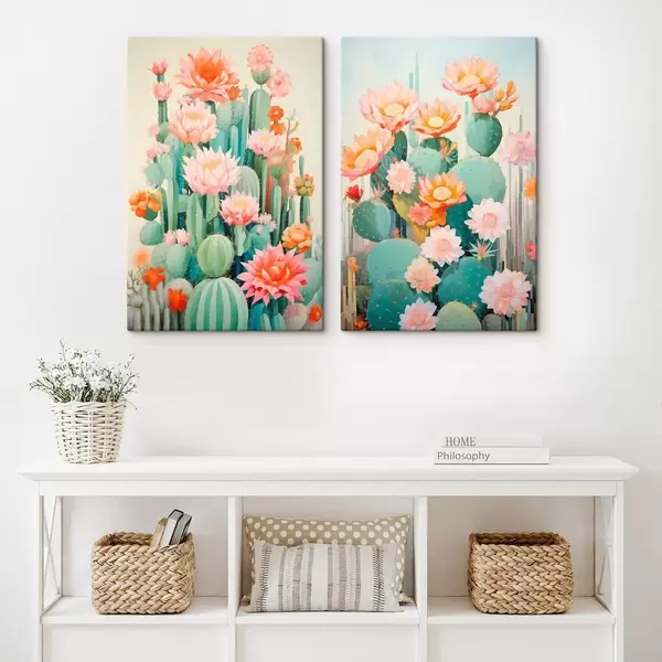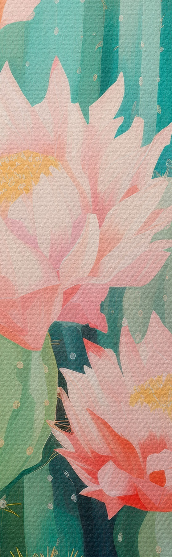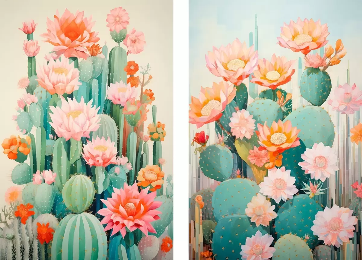 murales Cactus con flores grandes, una paleta de colores pastel y una sensación de calma. m01086