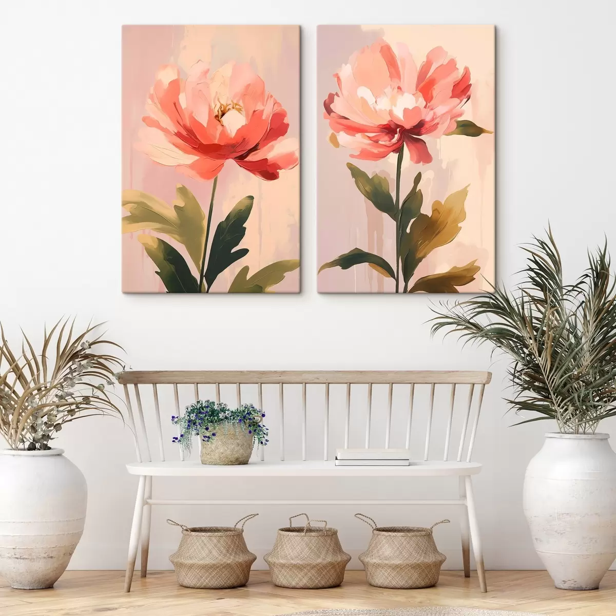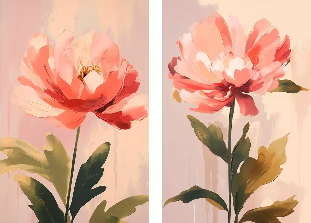 murales Peonías en tonos pastel sobre tallos altos en cálidos tonos rosados. m01093