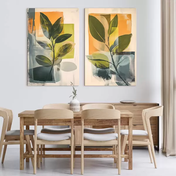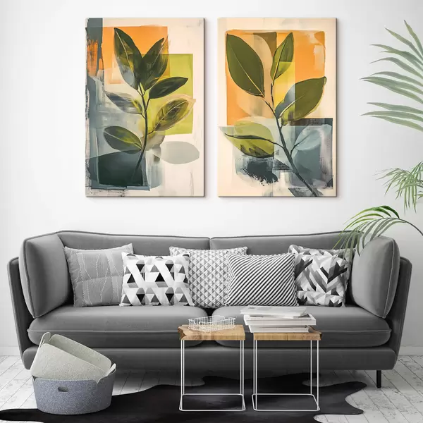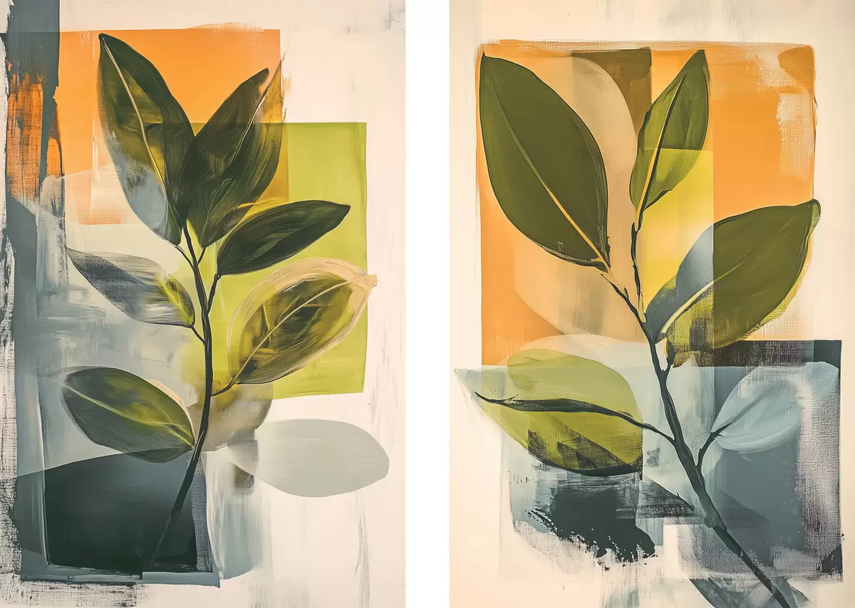 murales Ramitas con hojas sobre un fondo abstracto m01132