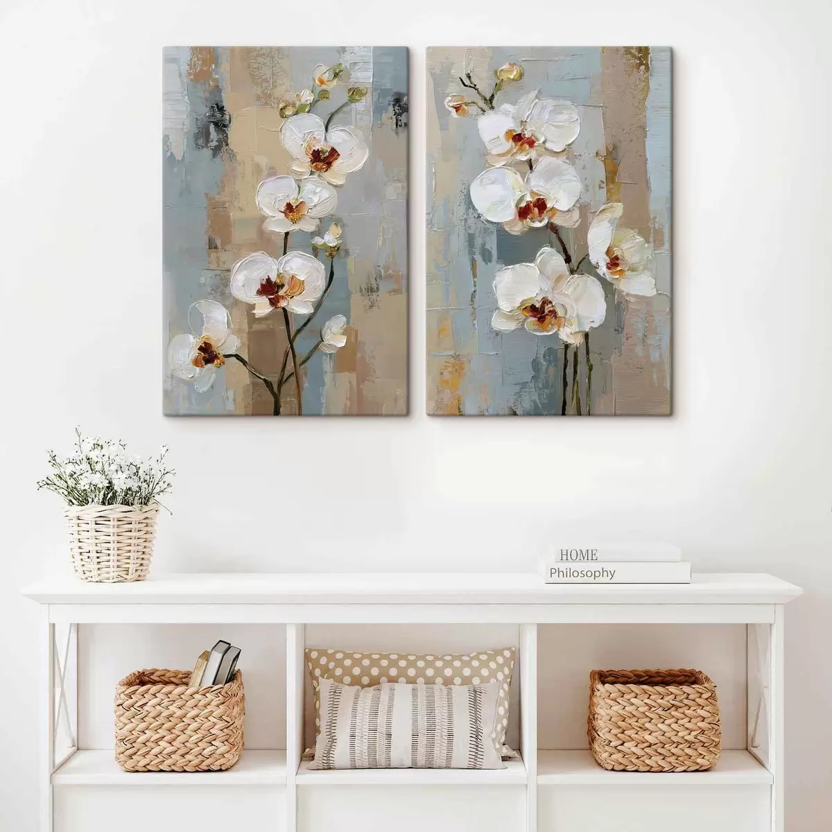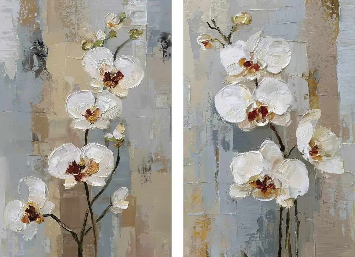 murales Flores de orquídea blanca al estilo de la pintura al óleo. m01175