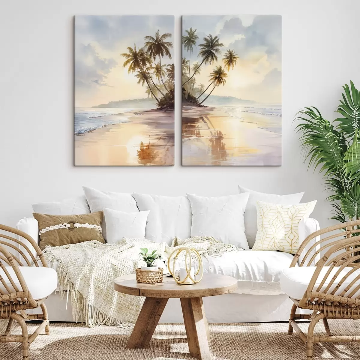murales Puesta de sol en la playa de una isla, en estilo acuarela. m01177