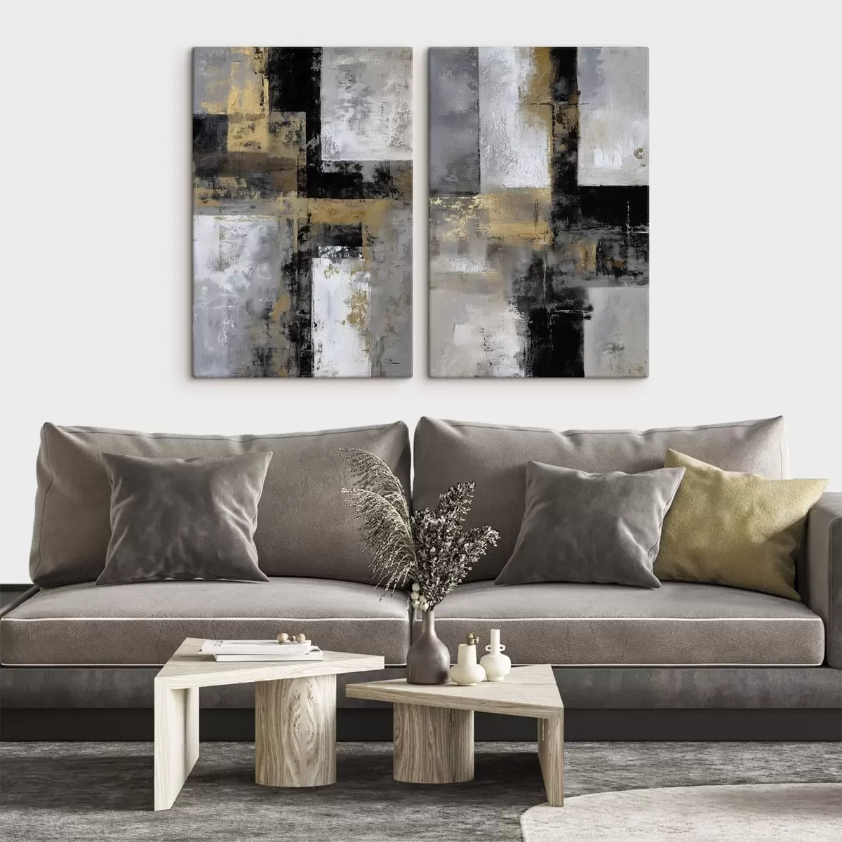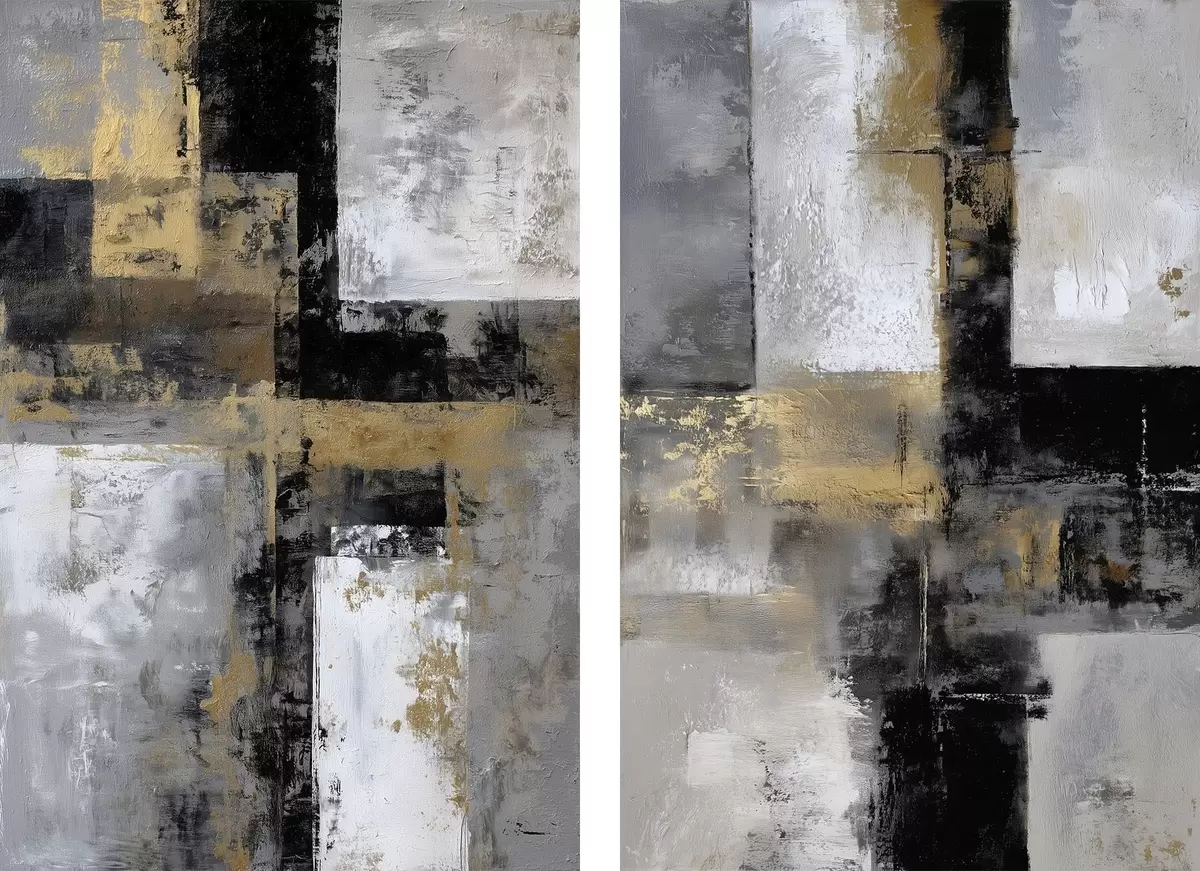 murales abstracción textural contemporánea en tonos negros, grises y blancos m01179