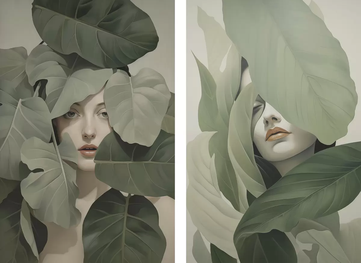 murales Retrato de una niña entre el follaje m01183