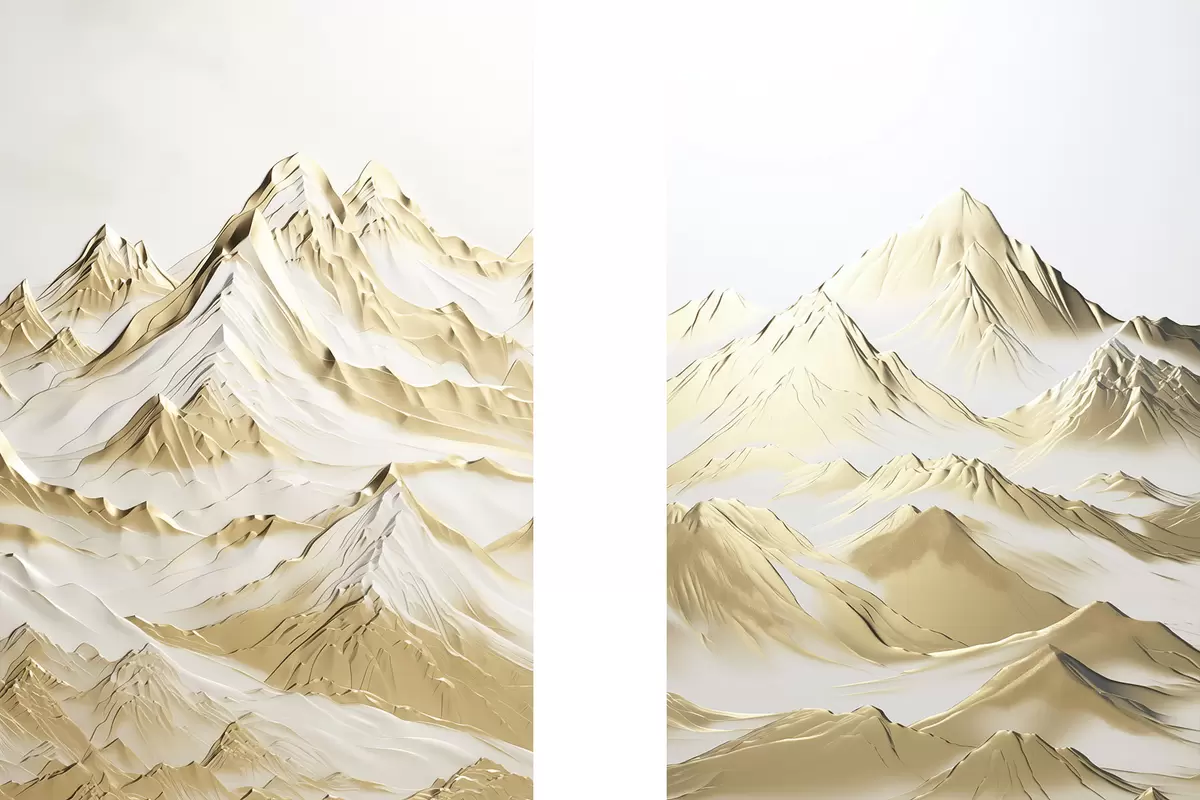 murales Un paisaje de montañas amarillas cubiertas de nieve con picos afilados y valles profundos bajo un cielo claro. m01236