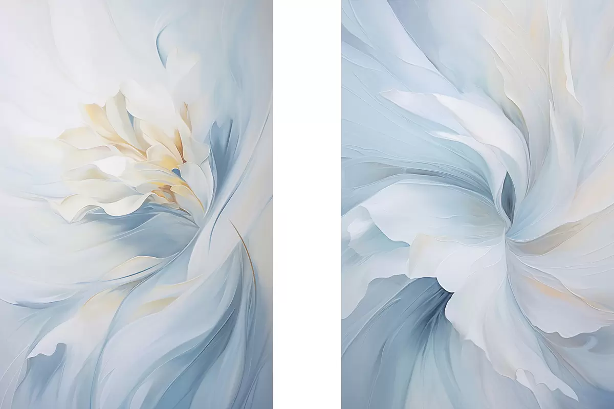 murales Pétalos abstractos, delicados y translúcidos que se arremolinan hacia dentro con una iluminación suave y una textura pictórica. m01244