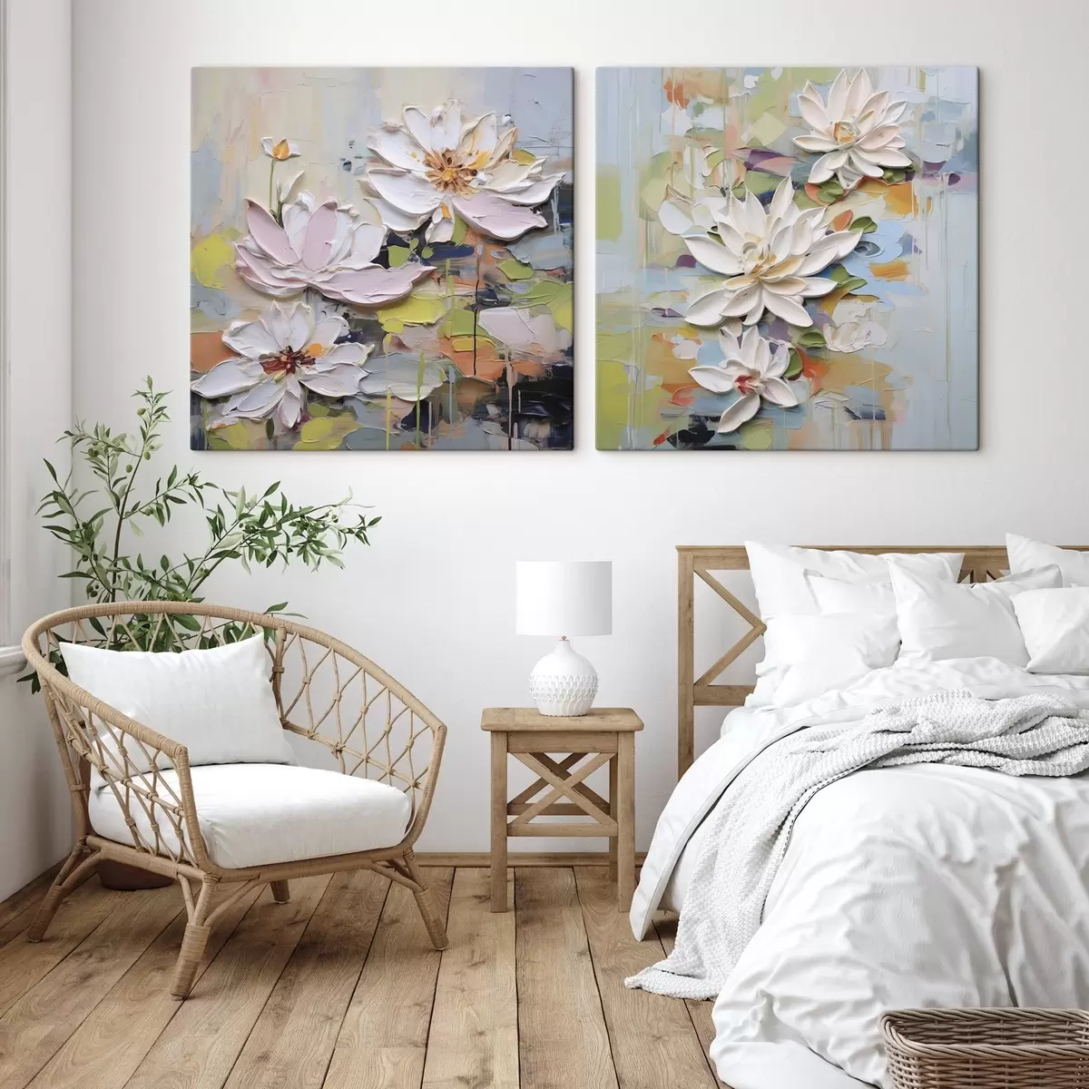 Hay tres tipos de material disponibles para pedidos: Lienzo Económico - material denso y duradero para impresión digital, idéntico al lienzo de pintor, superficie impermeable, reproducción realista de los detalles, material de grano medio. Lienzo Premium - la textura se asemeja a la de un lienzo de pintor (pequeños hilos entrelazados). Reproducción suave y detallada de la imagen sobre una superficie mate. Eco-Premium - tejido 100% algodón de alta calidad. Gracias a las fibras naturales de algodón, el material es duradero y resistente al desgaste. Excelente reproducción del color y el detalle.
