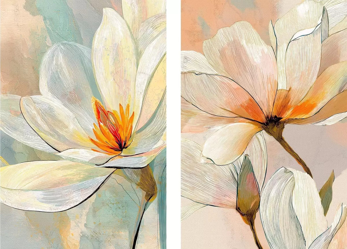 murales Magnolias con contornos gráficos en un estilo de ilustración de arte moderno. m30032