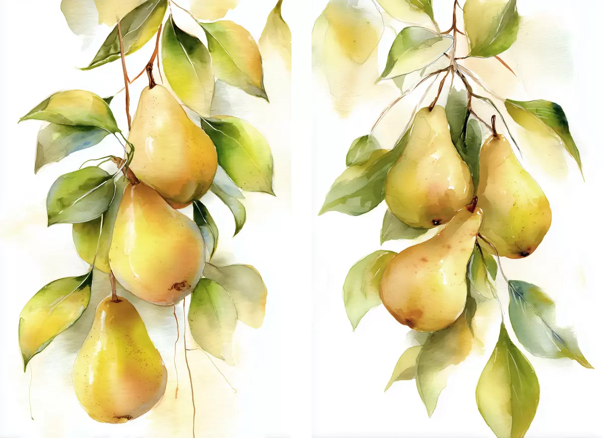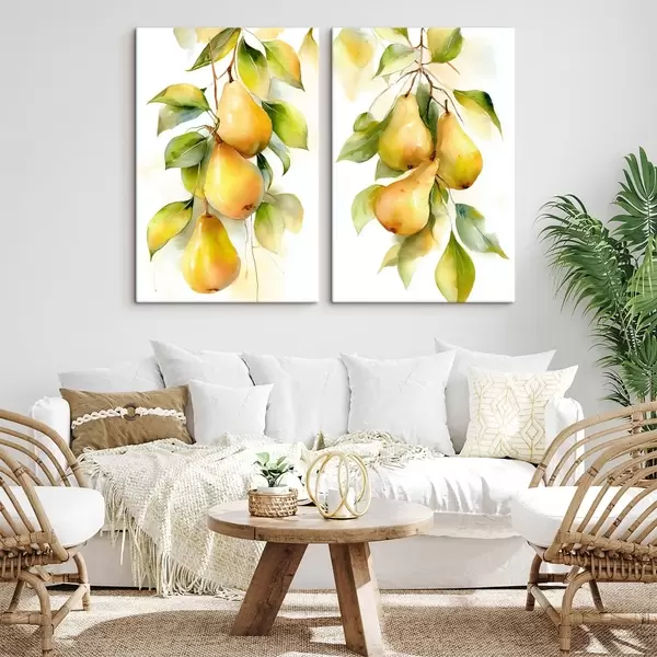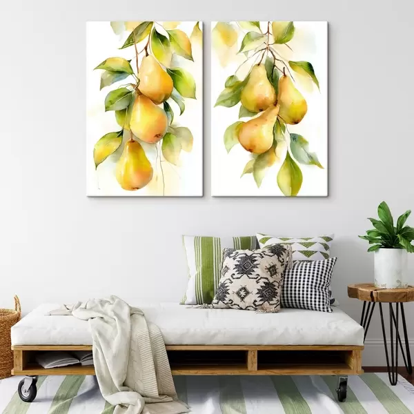 murales Jugosas peras amarillas en estilo acuarela m30088