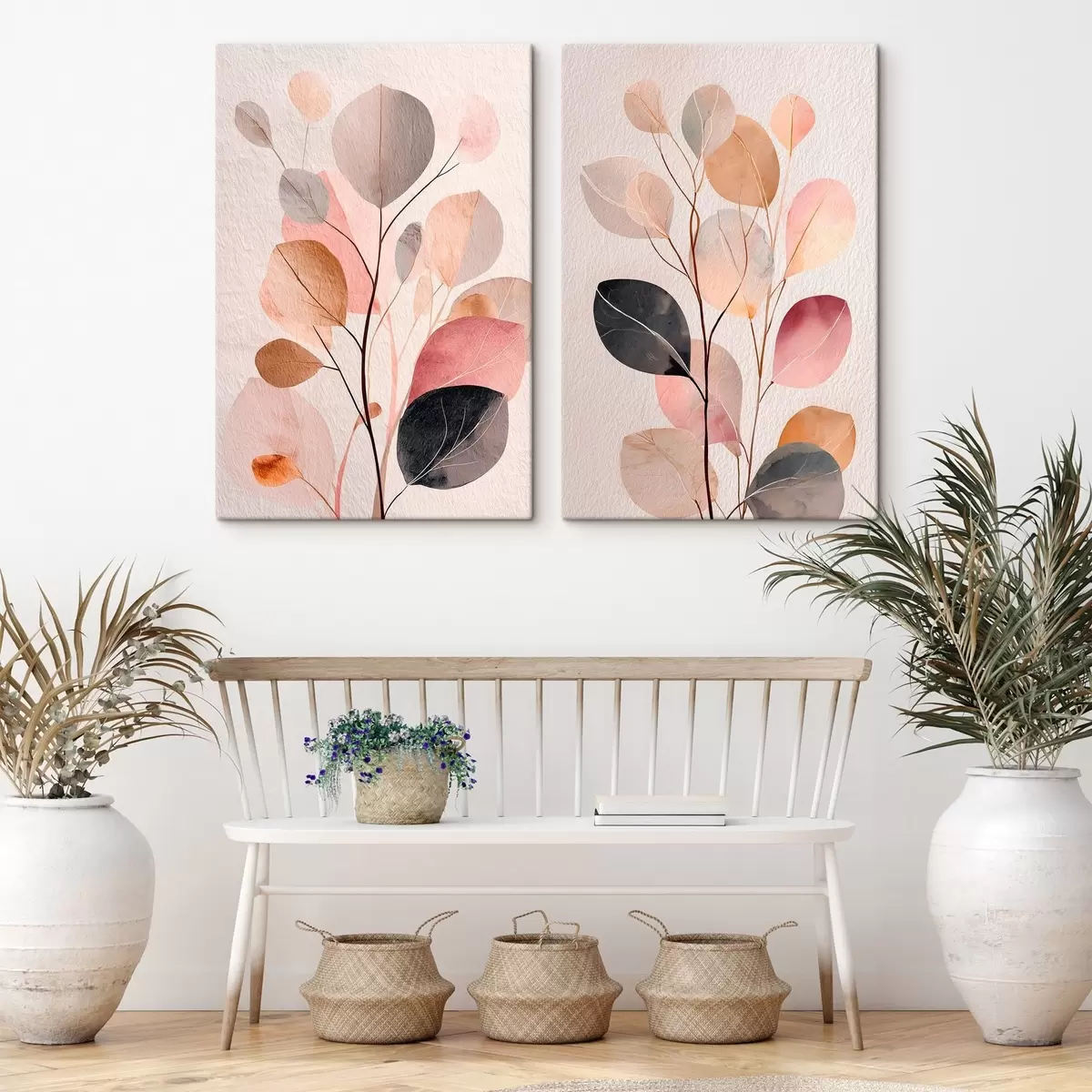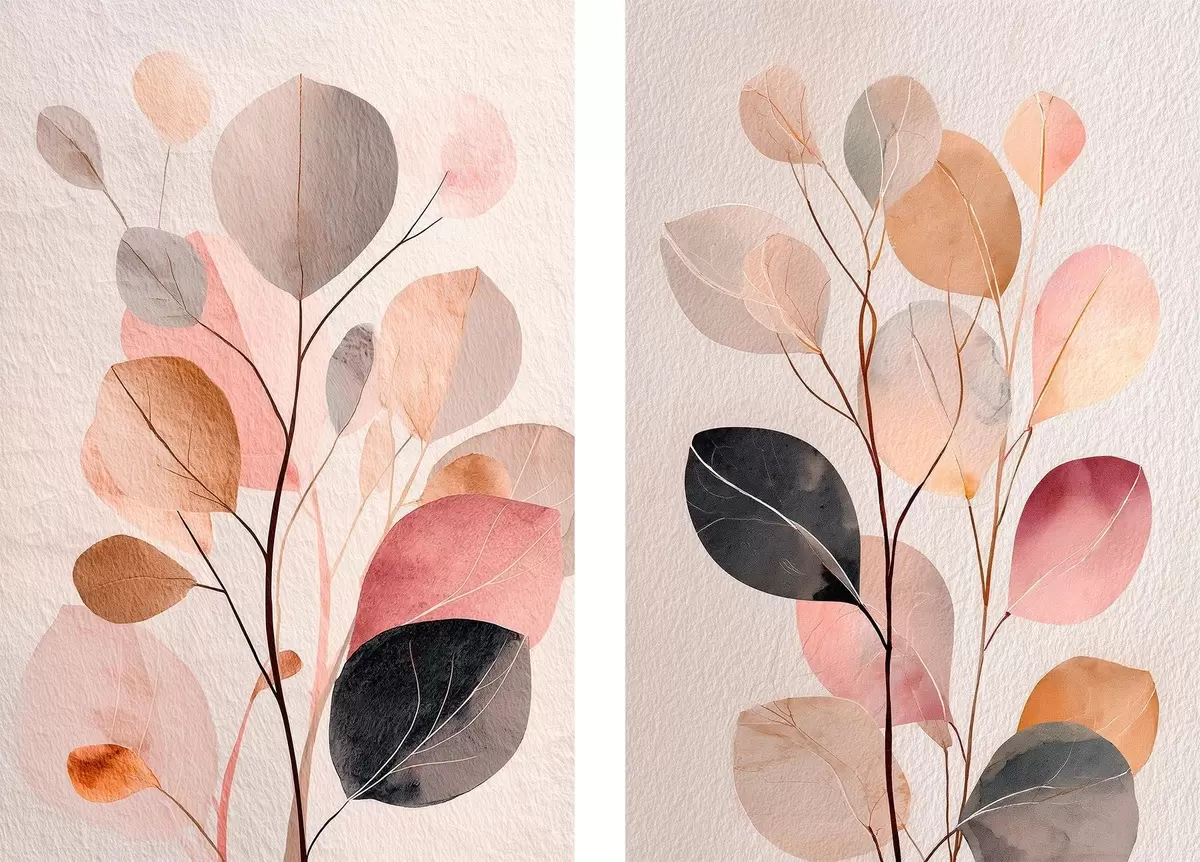 murales Composición botánica abstracta en dos partes, en estilo pictórico contemporáneo m30135