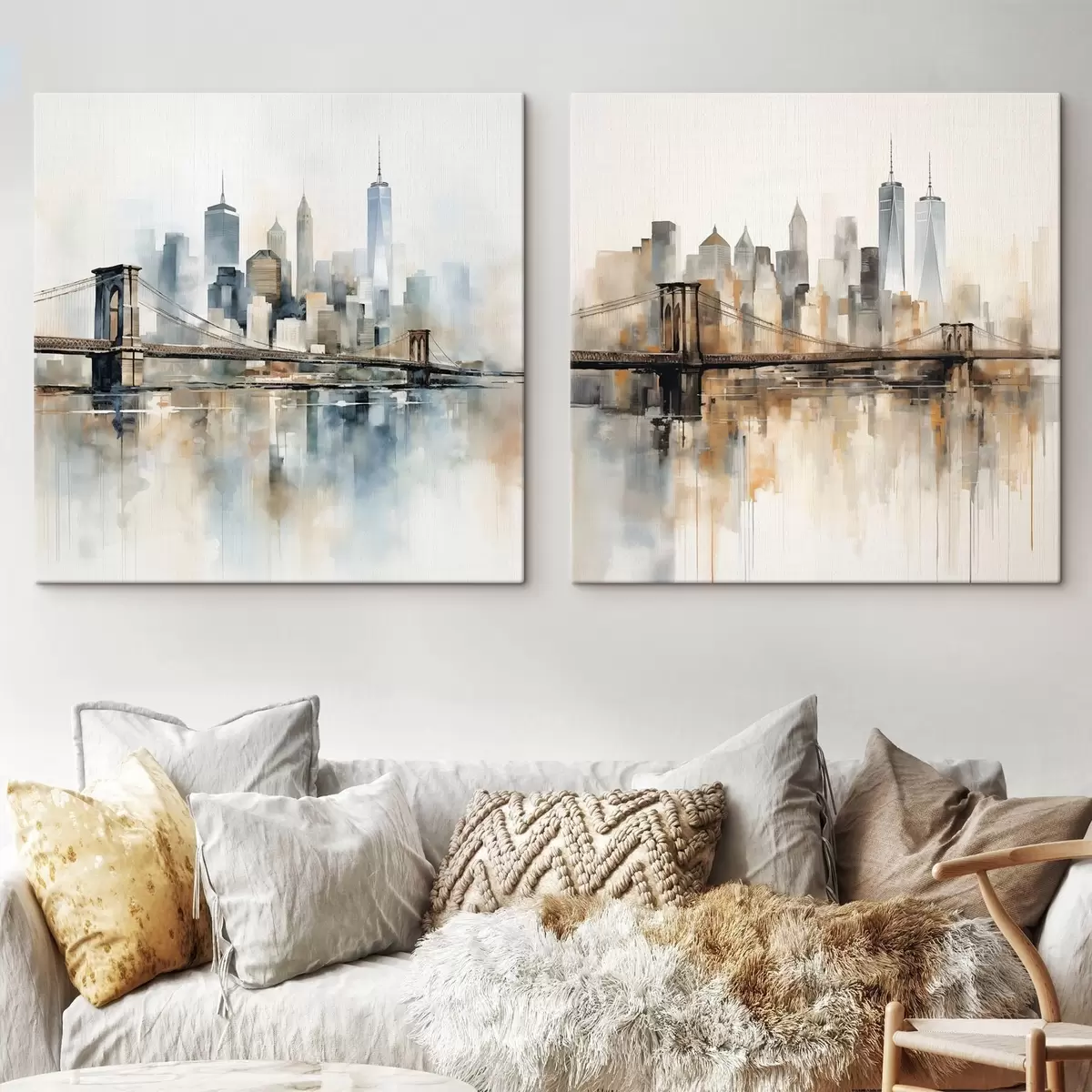 murales Silueta urbana abstracta, estilo de pintura en acuarela m30207